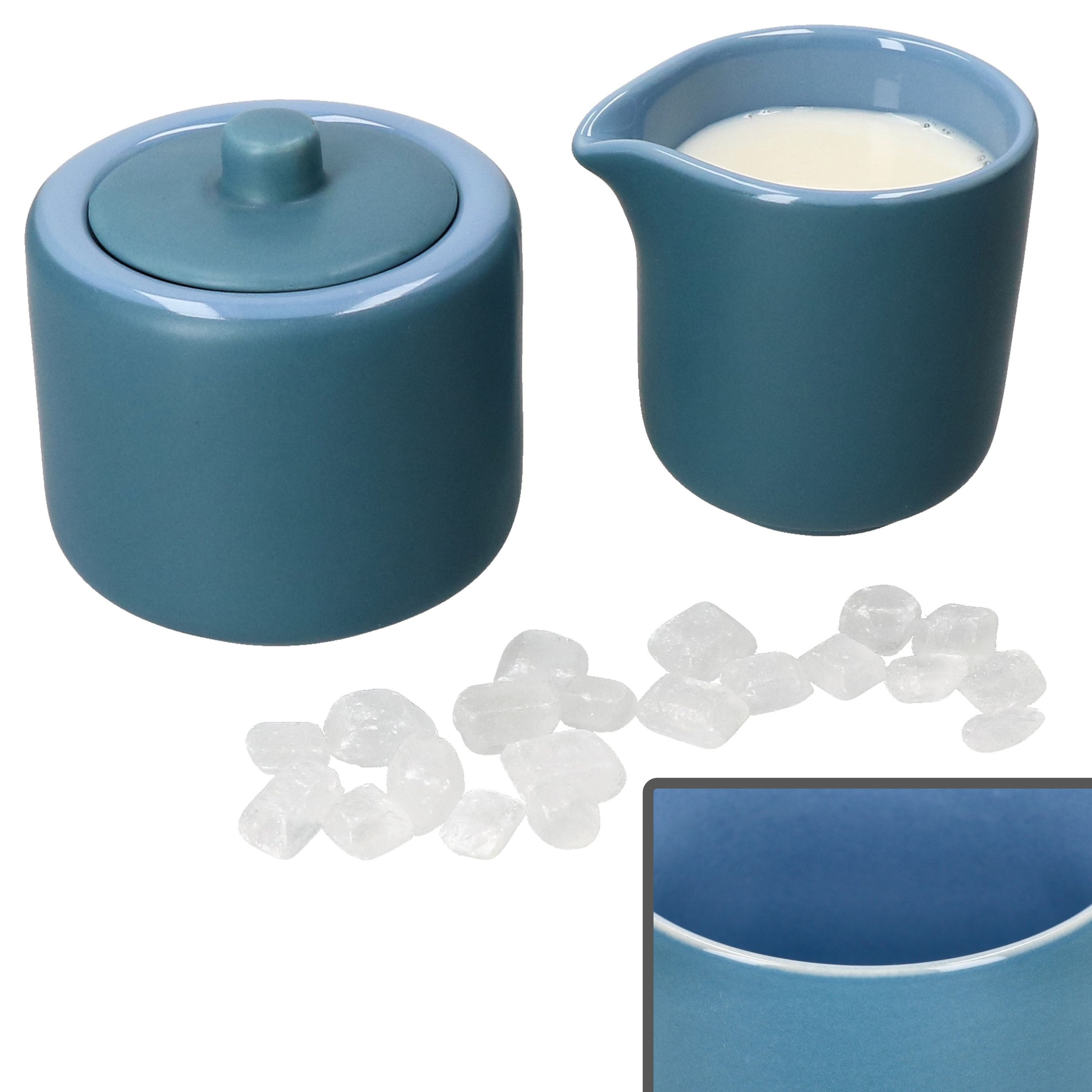 Genießen Sie das puristische meeresblaue Set aus Milchkännchen und Zuckerdose und präsentieren diese beim Kaffee zu Ihren Heißgetränken auf ansprechende und zugleich stillvolle Weise.