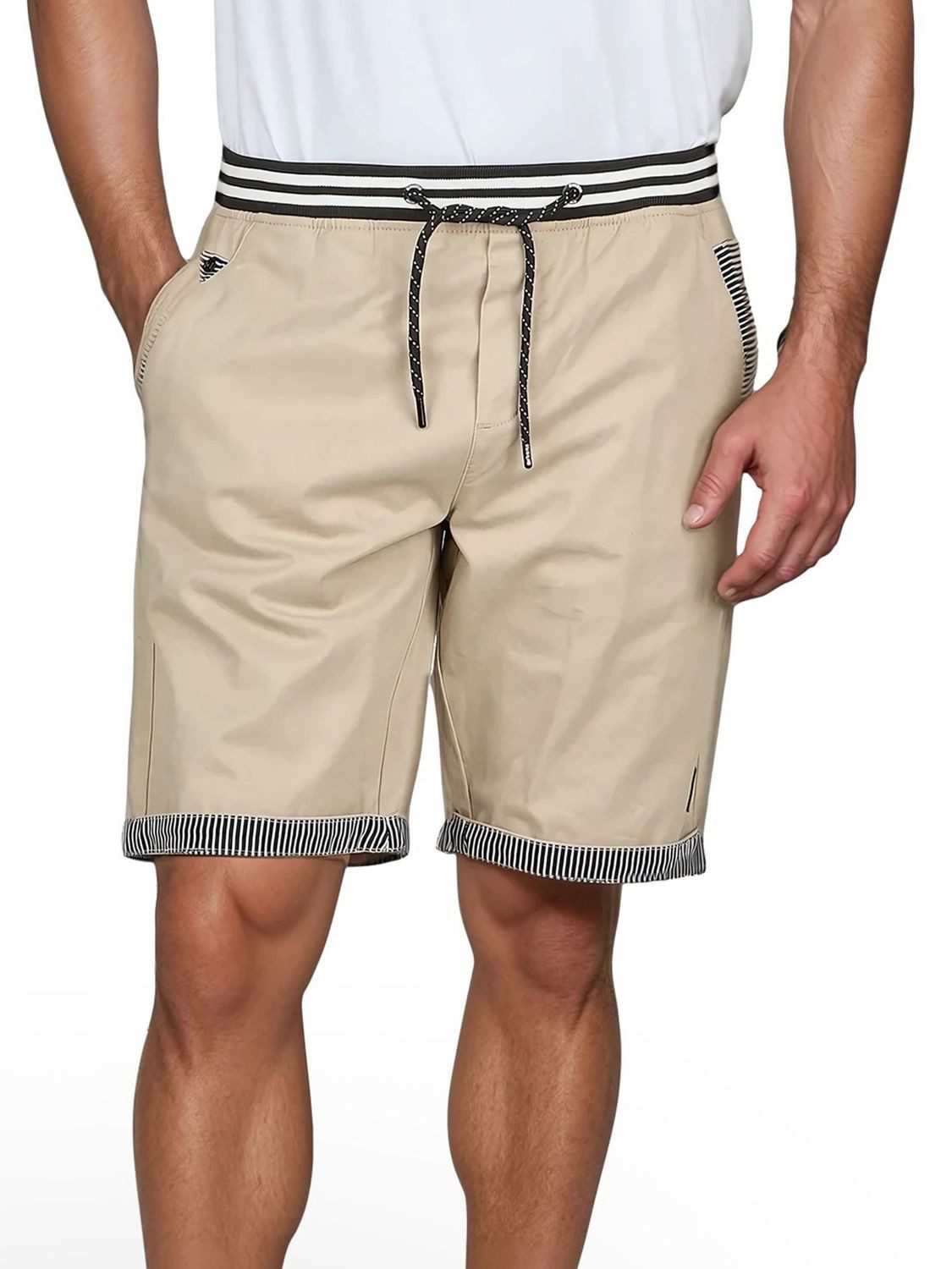 Die riverso Herren Shorts zeichnet sich durch eine Vielzahl praktischer Details aus. Die Hose ist Knielang geschnitten. Neben den beiden Seitentaschen verfügt die Shorts über zwei Gesäßtaschen die mit einem Knopf verschlossen werden. Bei der riverso Herren Bermuda Shorts RIVAngelo sind diese sogar ausgesprochen geräumig gestaltet, sodass neben Schlüssel und Geldbörse selbstverständlich auch das Smartphone in einer der Hosentaschen Platz findet. Darüber hinaus brilliert diese Shorts durch den farblich abgesetzten elastischen Bund mit einem verstellbaren Kordelzug. Auch die Seiten und Gesäßtaschen sowie der Bund am Oberschenkel sind farblich abgesetzt. Hergestellt ist diese Kurze Hose aus 98 % Baumwolle und 2 % Elasthan.