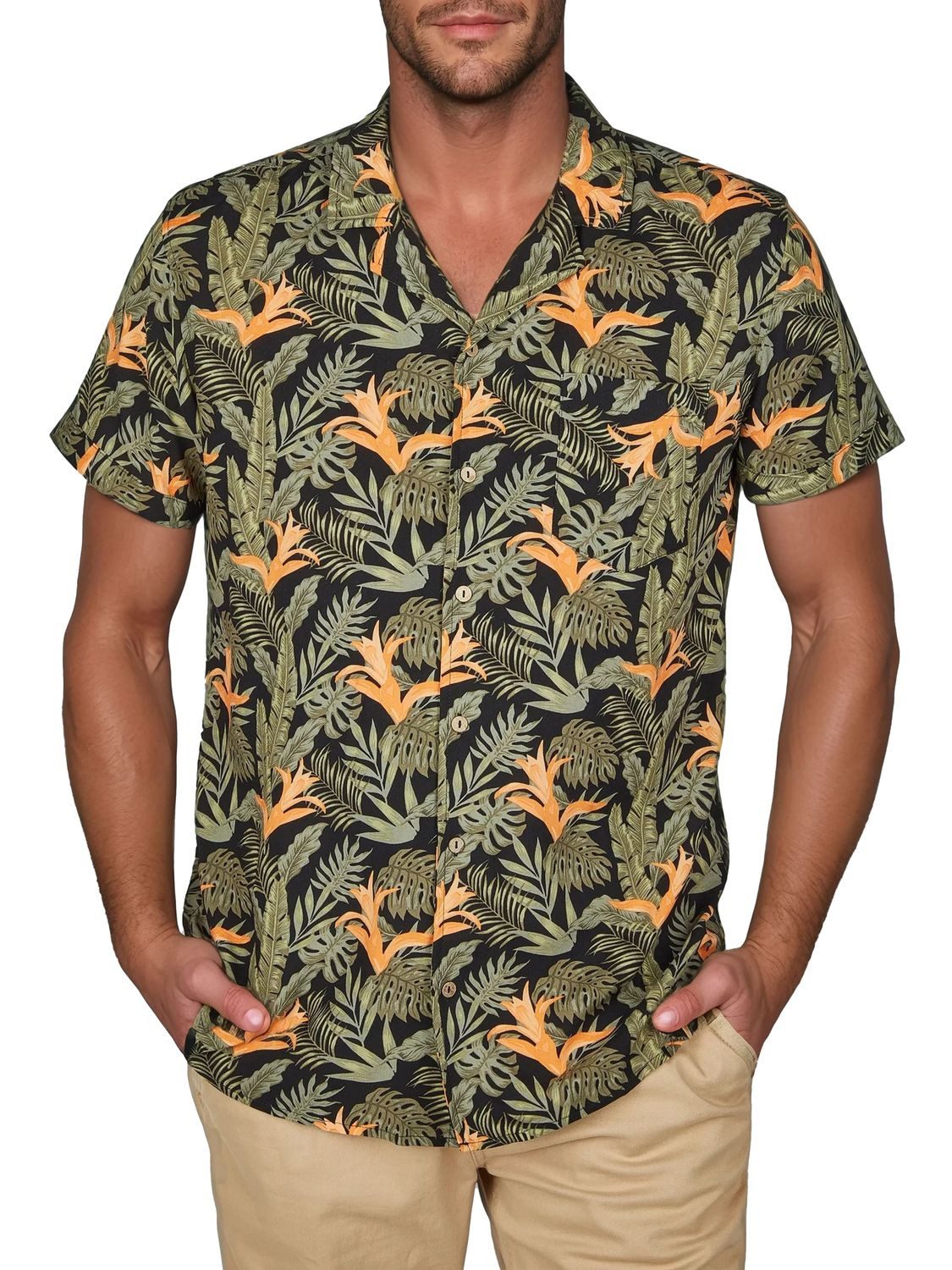 Das Hemd vom Hersteller riverso im Regular Fit Schnitt mit verschiedenen Blätter und Blumen Druck Motiven ist ein ideales Modell, dass Ihnen beim Tragen viel Freude machen wird. Dafür ist es aus 100% Viskose hergestellt, einem Material, das zum einen die Haut im Sommer atmen lässt, zum anderen schnell durchgewaschen und anschließend wieder trocken ist. Damit genügen selbst wenige Shirts im Schrank, um damit gut über den Sommer zu kommen.