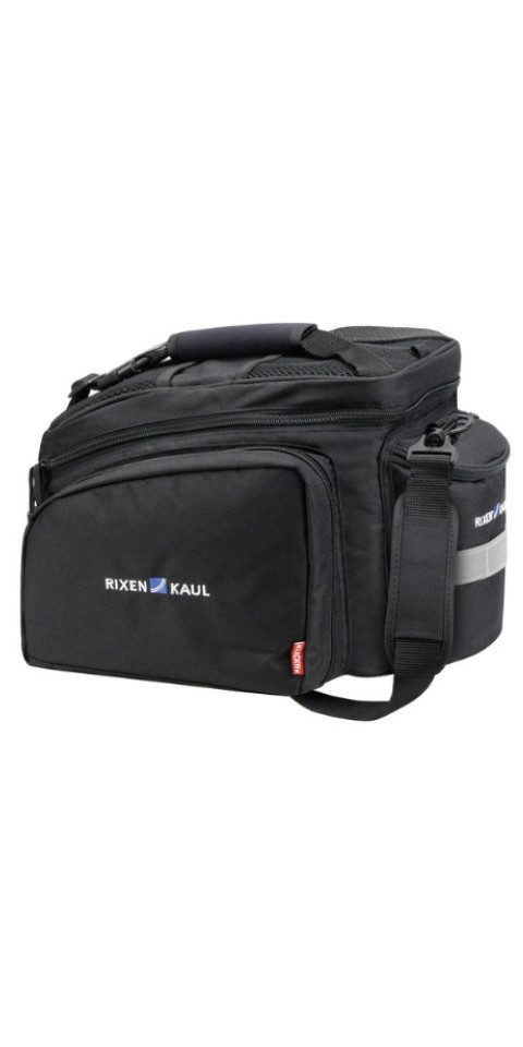 Die Rixen & Kaul Rackpack 2 Plus ist eine erweiterbare Gepäckträgertasche (12-16L) mit ausklappbaren Seitentaschen, Netzfächern, Tragegriff-Spanngurt und KLICKfix-Kompatibilität.