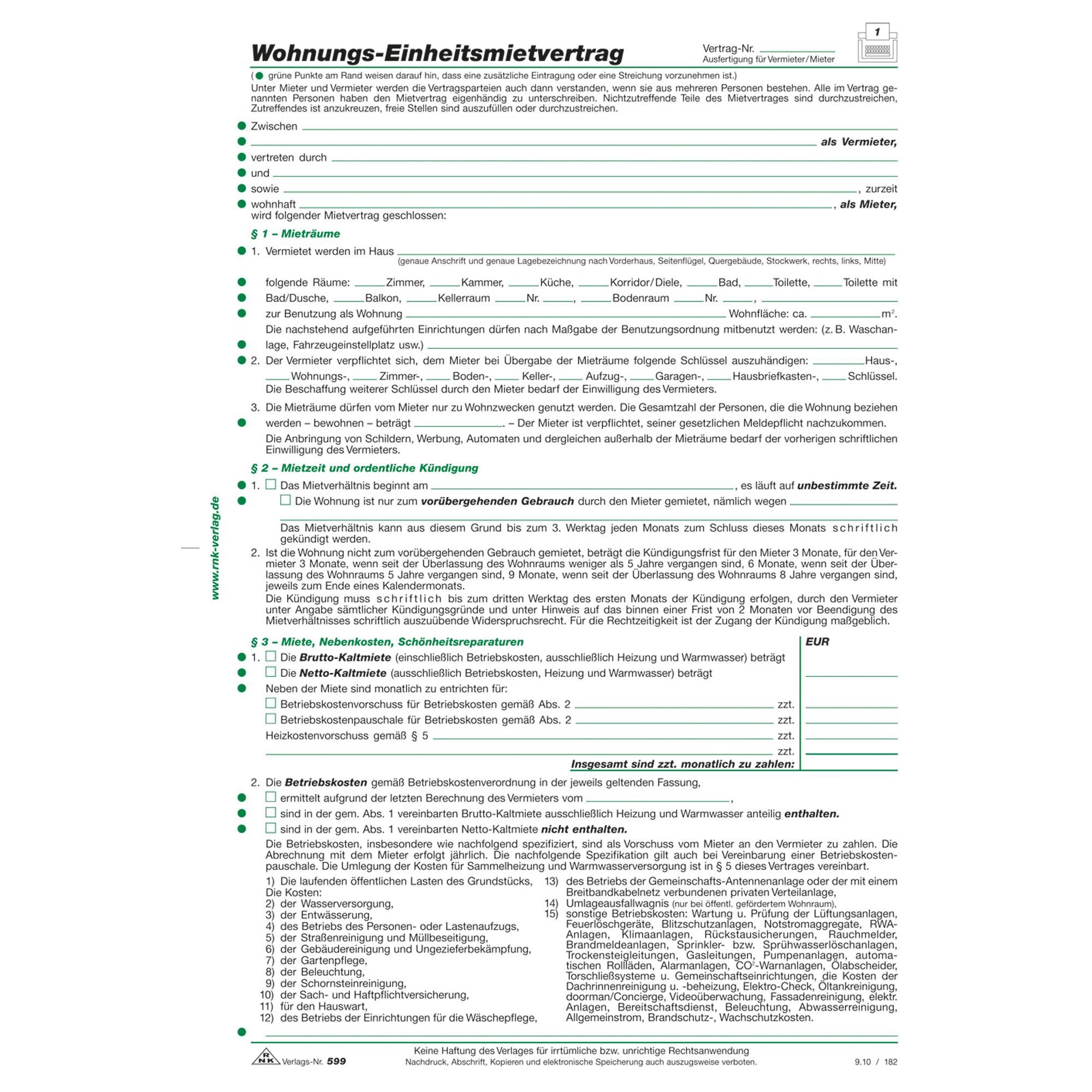 Formularblock RNK Mietvertrag Wohnung A4 Einheitsmietvertrag