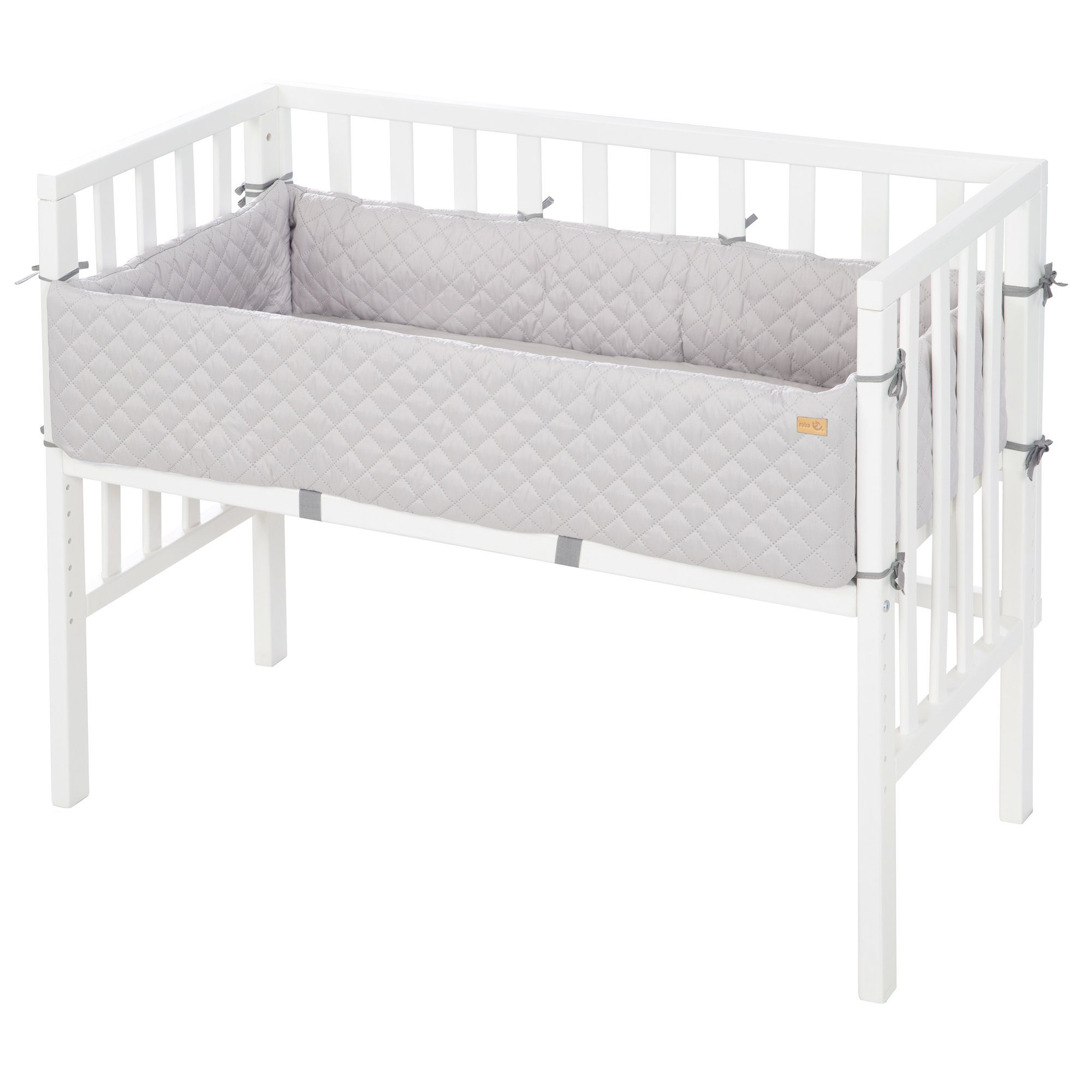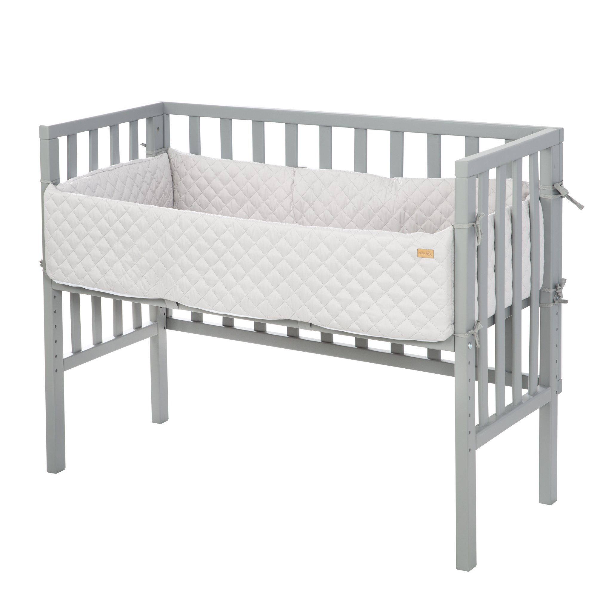 Das roba Beistellbett 2in1 mit Barriere ist Beistellbett zum Elternbett und Kinderbank in einem. Das Bettchen beinhaltet eine hochwertige Babymatratze 45 x 90 cm aus getestetem PU-Schaumstoff, ein gepolstertes Nestchen in ‚roba Style‘-Design und eine patentrechtlich geschützte Sicherheitsbarriere. Das Anstellbett lässt sich einfach montieren (ca. 15 Minuten) und lässt sich mit den mitgelieferten Gurten leicht und sicher am Elternbett befestigen. Durch eine Höhenverstellung von 44 cm bis hin zu jeder Betthöhe inkl. Boxspringbetten, lässt sich das Stubenbett optimal auf die Höhe der Elternmatratze einstellen ohne zu verrutschen. Das Beistellbett 2in1 ist von Geburt an geeignet und wächst mit bis zur Kinderbank für größere Kinder. Das Babybeistellbett bietet ein optimales und sicheres Schlafklima und wurde nach den aktuellsten Sicherheitsstandards nach Norm EN 1130:2019 in Deutschland entwickelt. Все verwendeten Materialien des roba Beistellbett 2in1 sind schadstoffgeprüft, zertifiziert und werden regelmäßig in der Produktion kontrolliert. Das roba Babybettchen mit Flachstäben ist in der Farbe Taupe lackiert. Der verwendete Lack ist lebensmittelecht und hautverträglich. Die Liegefläche des Anstellbettchens beträgt 45 x 90 cm. Ein Verlängerungsgurt zur Befestigung an speziellen Boxspringbetten ist mit Artikelnummer 204105 passend dazu erhältlich.