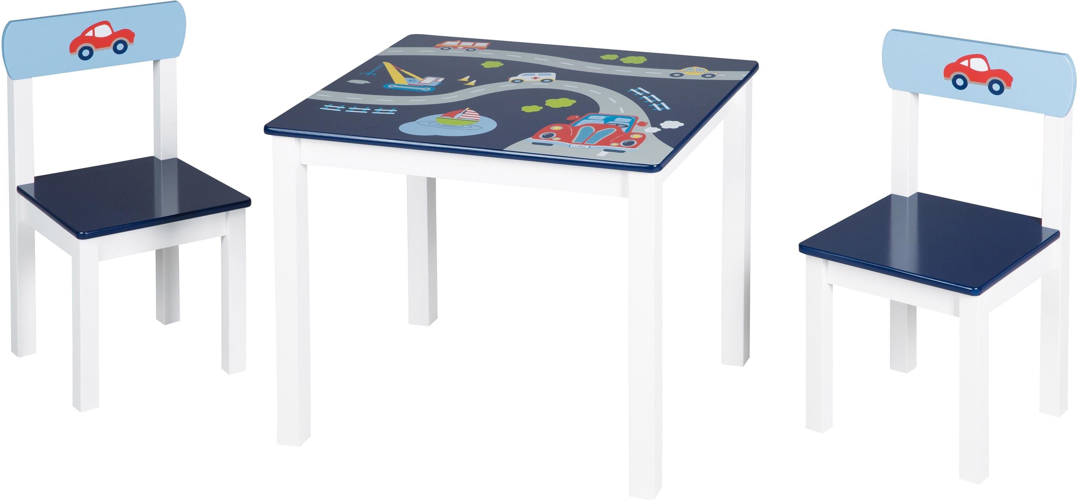 Die 3-teilige roba Kindersitzgruppe »Rennfahrer« aus lackiertem und mit Fahrzeug-Motiven bedrucktem MDF ist ideal auf die Sitzbedürfnisse von 2- bis 10-jährigen Kindern zugeschnitten. Sie besteht aus einem formschönen Kindertisch und zwei passenden Stühlen in Weiß und Blautönen. Ihr aktiver Nachwuchs kann an der Kindersitzgruppe schon von klein auf bequem und komfortabel am Tisch sitzen, essen, spielen, malen und basteln. Mit der Kindersitzgruppe können Kinder ihre Welt entdecken und viele schöne gemeinsame Momente mit ihren Eltern und Spielgefährten erleben.