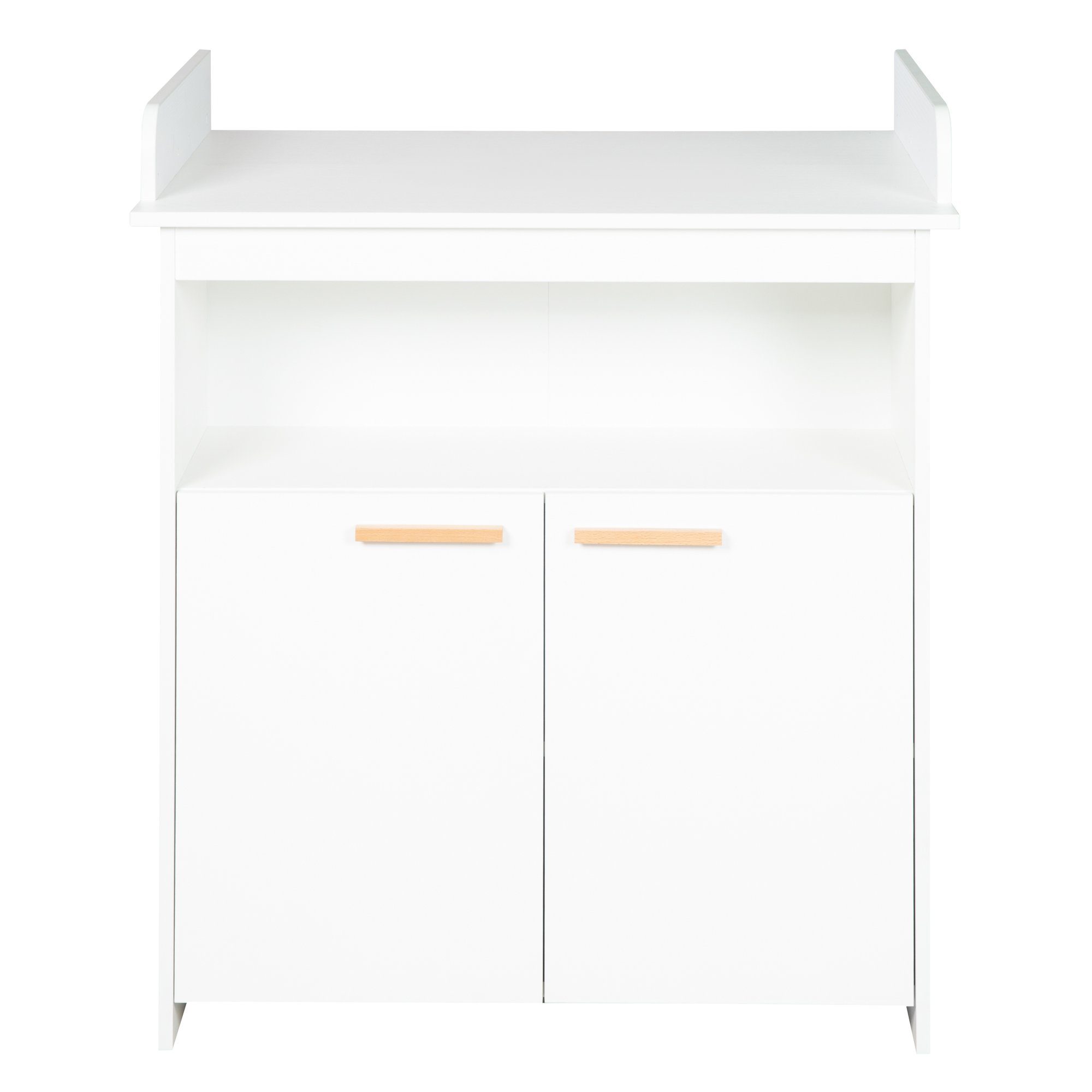 Sie bietet hinter 2 Türen viel Stauraum und dank eines offenen Faches sind Windeln, Handtücher und andere wichtige Pflegeutensilien stets griffbereit