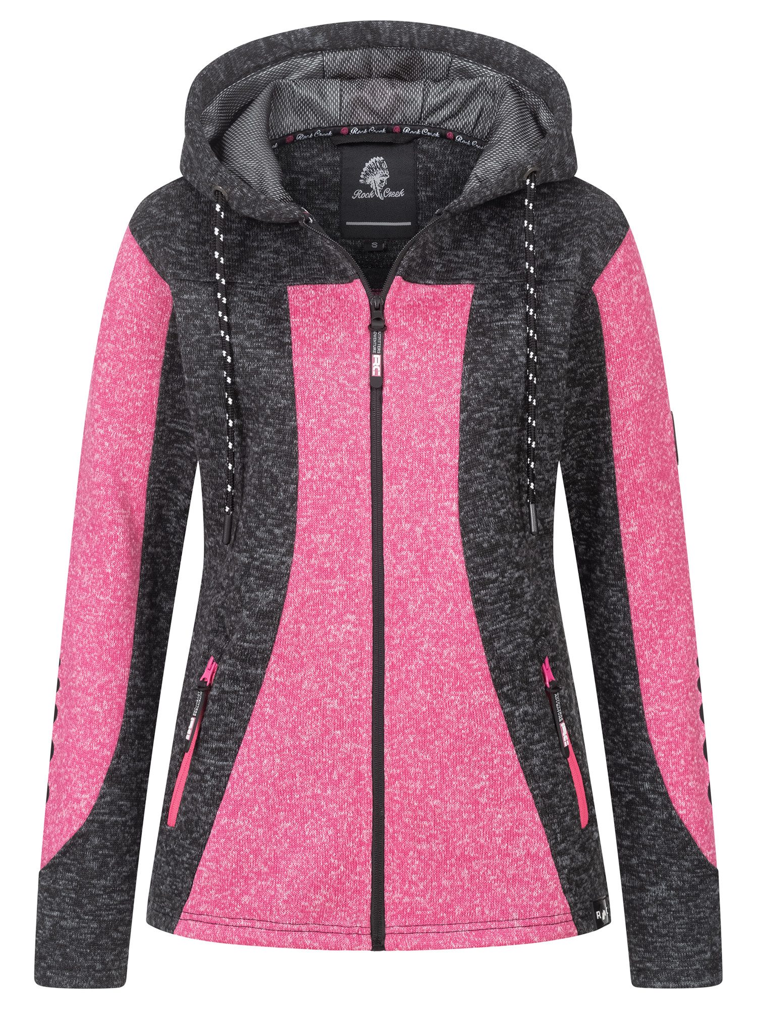 Tauchen Sie ein in wohlige Wärme und Gemütlichkeit mit unserer Rock Creek Damen Fleecejacke. Das melierte Fleece-Material bietet Ihnen nicht nur angenehme Wärme an kühlen Tagen, sondern auch ein Gefühl von Geborgenheit und Komfort.