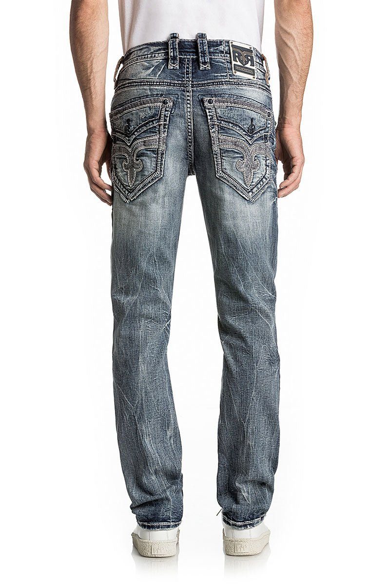 Entdecke den individuellen Charakter unserer Alternitive Straight-Fit Herrenjeans mit markanten Nähten und einem zeitgemäßen 5-Pocket-Design. Das auffällige gestickte Signature Reverse Lilienmotiv setzt ein persönliches Statement und unterstreicht die Liebe zum Detail. Die hochwertige Qualität dieser Jeans zeigt sich in jedem Detail und verspricht nicht nur ein luxuriöses Tragegefühl, sondern auch zeitlose Eleganz. Das aufwendige RR-Leder-Rückseiten-Patch setzt markante Akzente und verleiht der Jeans eine Exklusivität, die ins Auge fällt. Die dunkle Waschung und die Kombination aus intensiven Honeycombs und Whiskers verleihen der Jeans eine moderne, gelebte Optik. Der Distressed-Look rundet das Gesamtbild ab, verleiht der Jeans eine rebellische Note und unterstreicht den urbanen Flair. Mit unserer Alternitive Straight-Fit Herrenjeans investierst du nicht nur in zeitgemäßen Stil, sondern auch in Qualität und Ausdrucksstärke. Bestelle jetzt und erlebe den einzigartigen Mix aus Eleganz und urbaner Lässigkeit!
