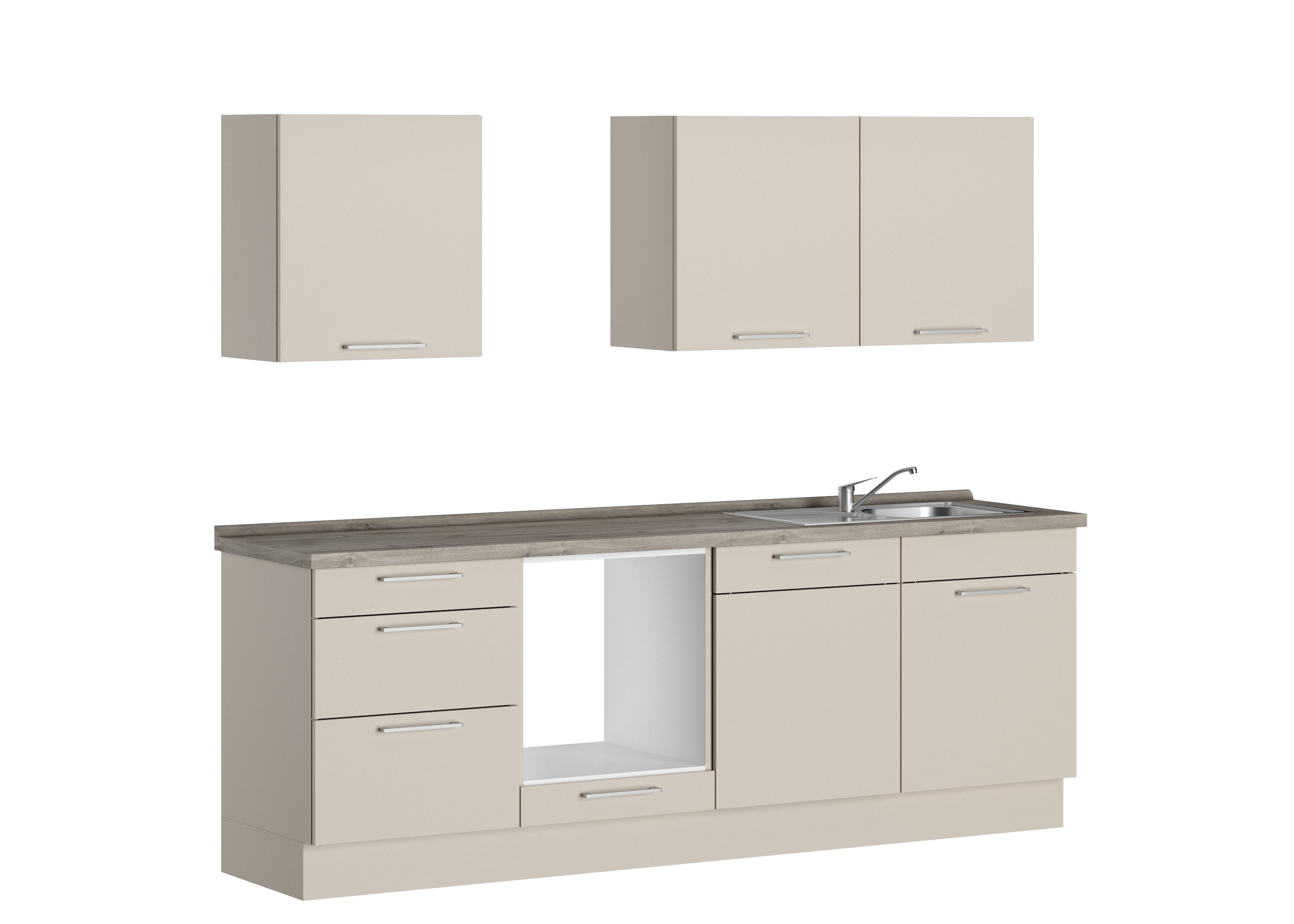 Ausstattung | Küchenzeile ohne E-Geräte Durchgehende Arbeitsplatte Einlegeböden höhenverstellbar |