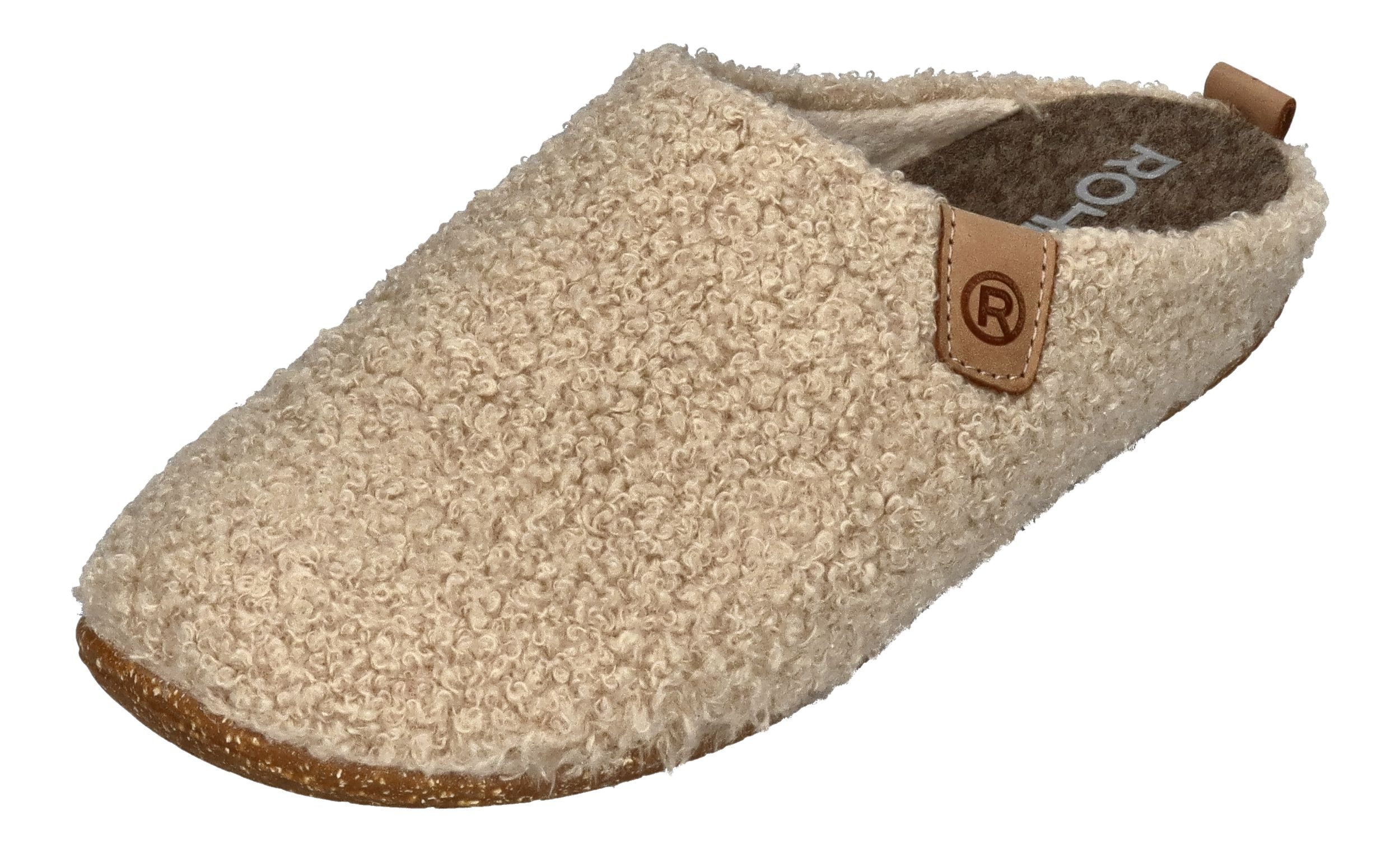 Die Hauschuhe Tivoli in beigem, synthetischem Plüsch sind absolut gemütlich durch die ausgeformte Innensohle und den verwendeten Softfilz.