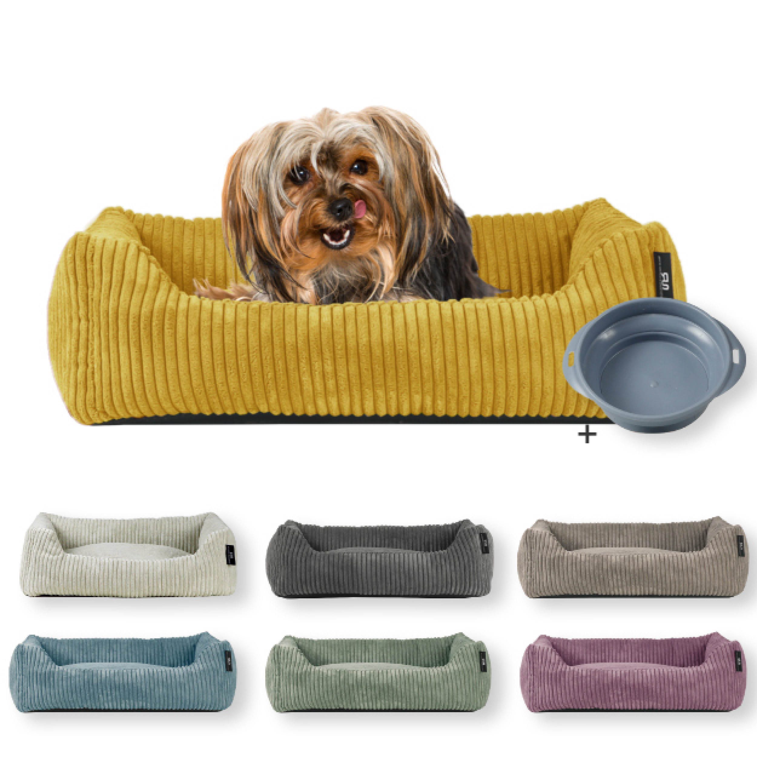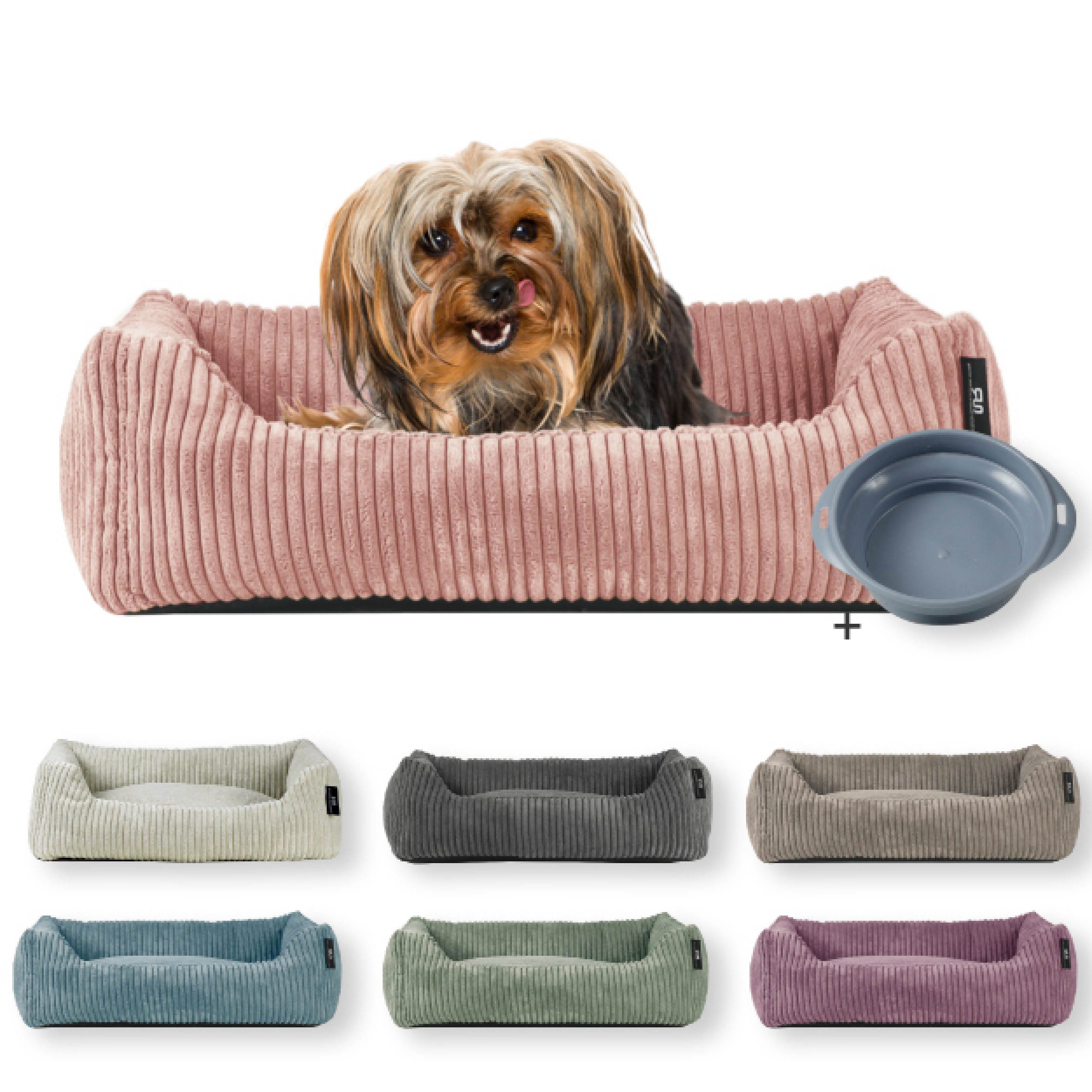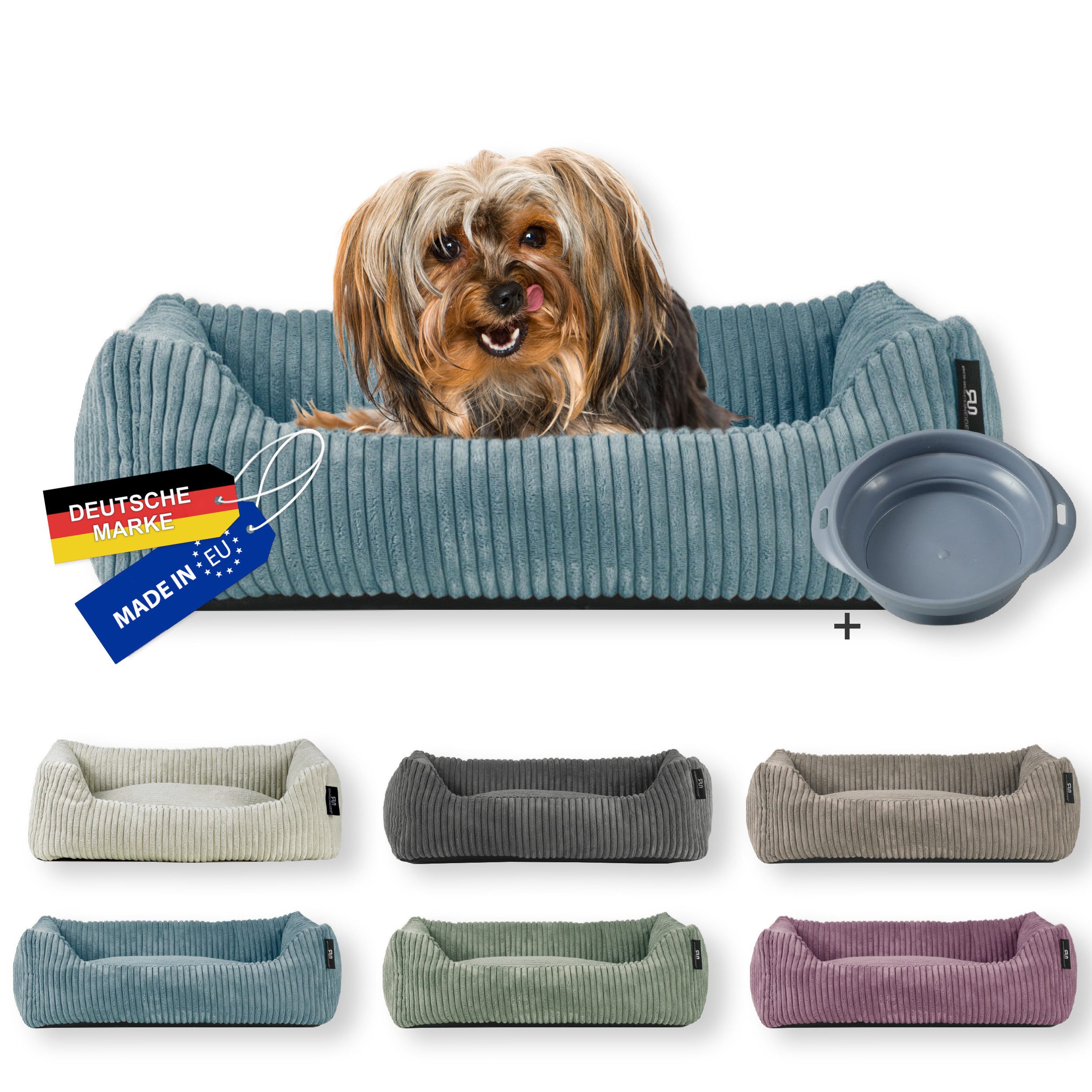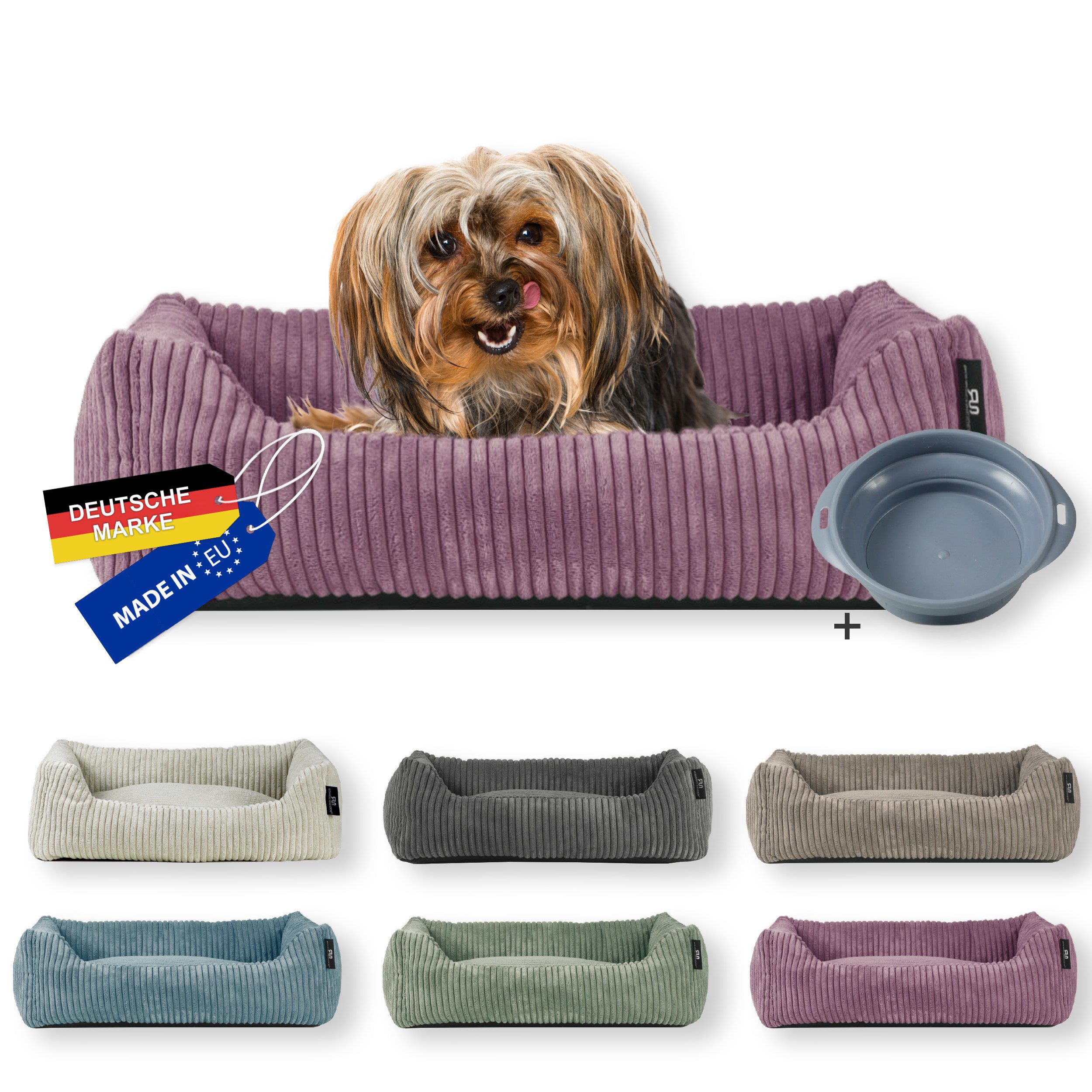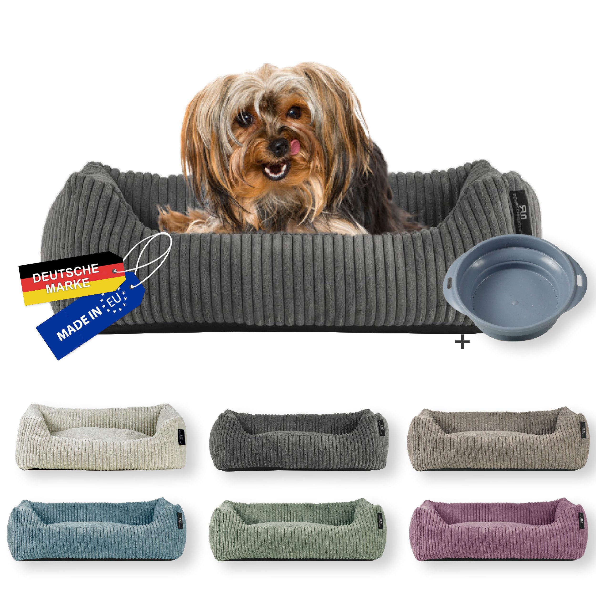 Rohrschneider Hundebett für kleine Hunde mit Hundekissen Cord waschbarer Bezug inkl. Futternapf
