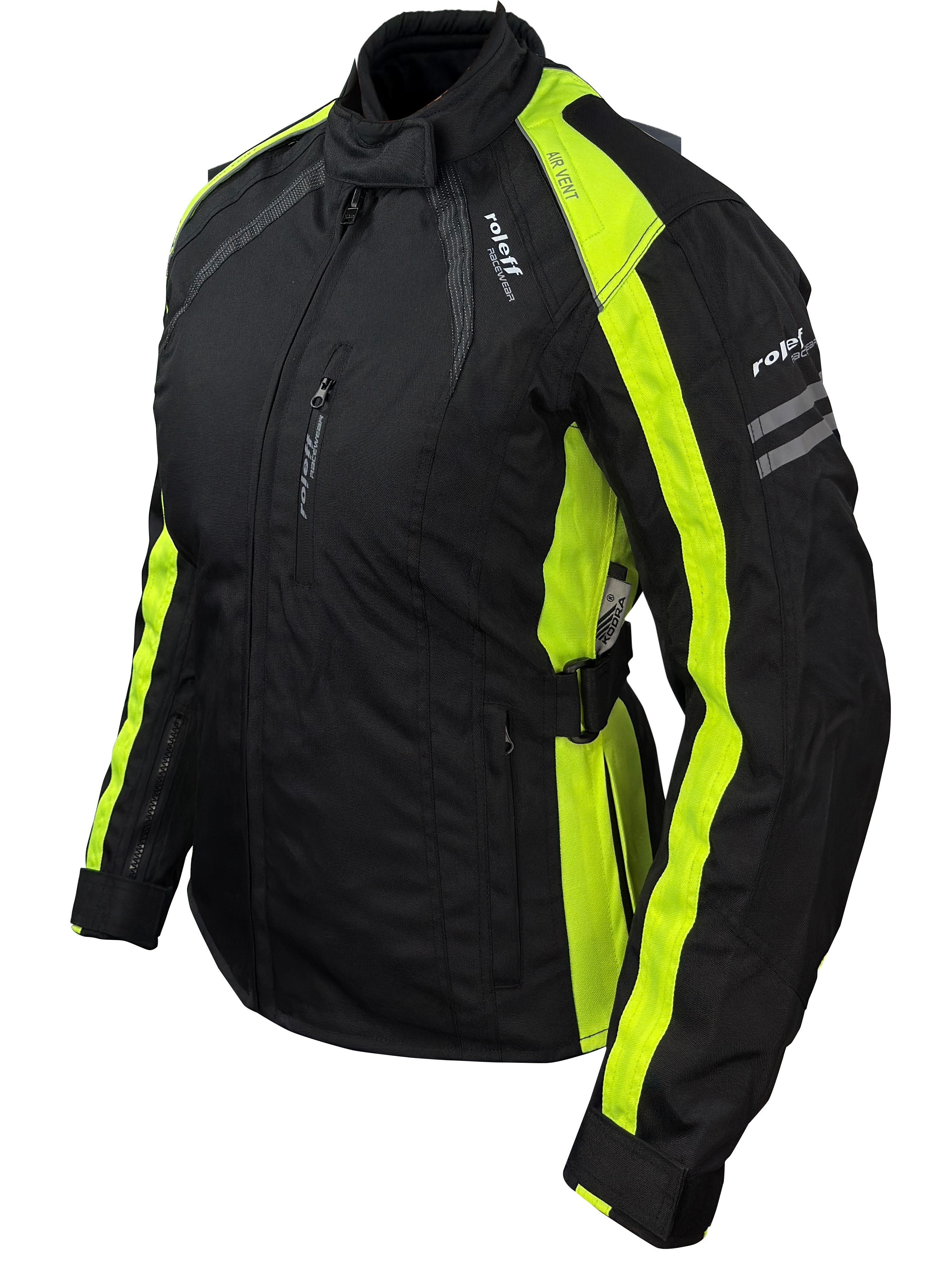 Durch Belüftungsreißverschlüsse an der Front ist auch auf langen Fahrten für angenehme Kühlung gesorgt. Zwei Einlassöffnungen im Schulterbereich und eine große Abluftöffnung am Rücken sorgen bei Bedarf für eine sehr gute Belüftung. Die Belüftungsöffnungen sind mit einem Meshgewebe geschützt.