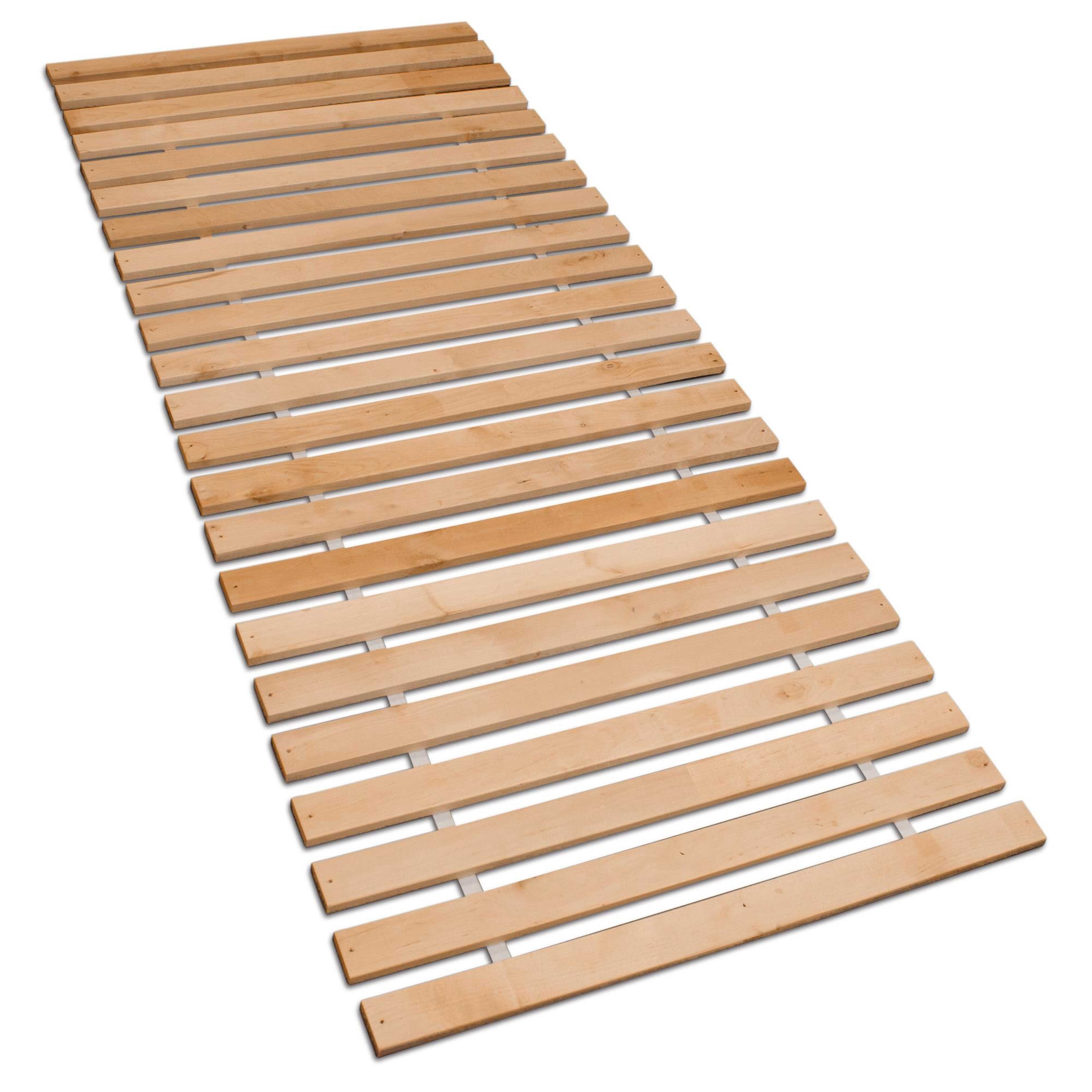 Besondere Hinweise | Der Lattenrost sollte etwa 4 cm niedriger sein als die Einlasstiefe des Bettes, damit die Matratze gut im Bettrahmen sitzt. Um mit handelsüblichen Bettgestellen kompatibel zu sein, werden Lattenroste in der Regel etwas kleiner als die üblichen Bettenmaße gefertigt. Sie entsprechen dabei der Norm DIN EN 1725:1998-2. Beispiel: Bei einem Bettenmaß von ca. 90x200 cm hat der Lattenrost ein Rahmenmaß von ca. 89x196 cm. |