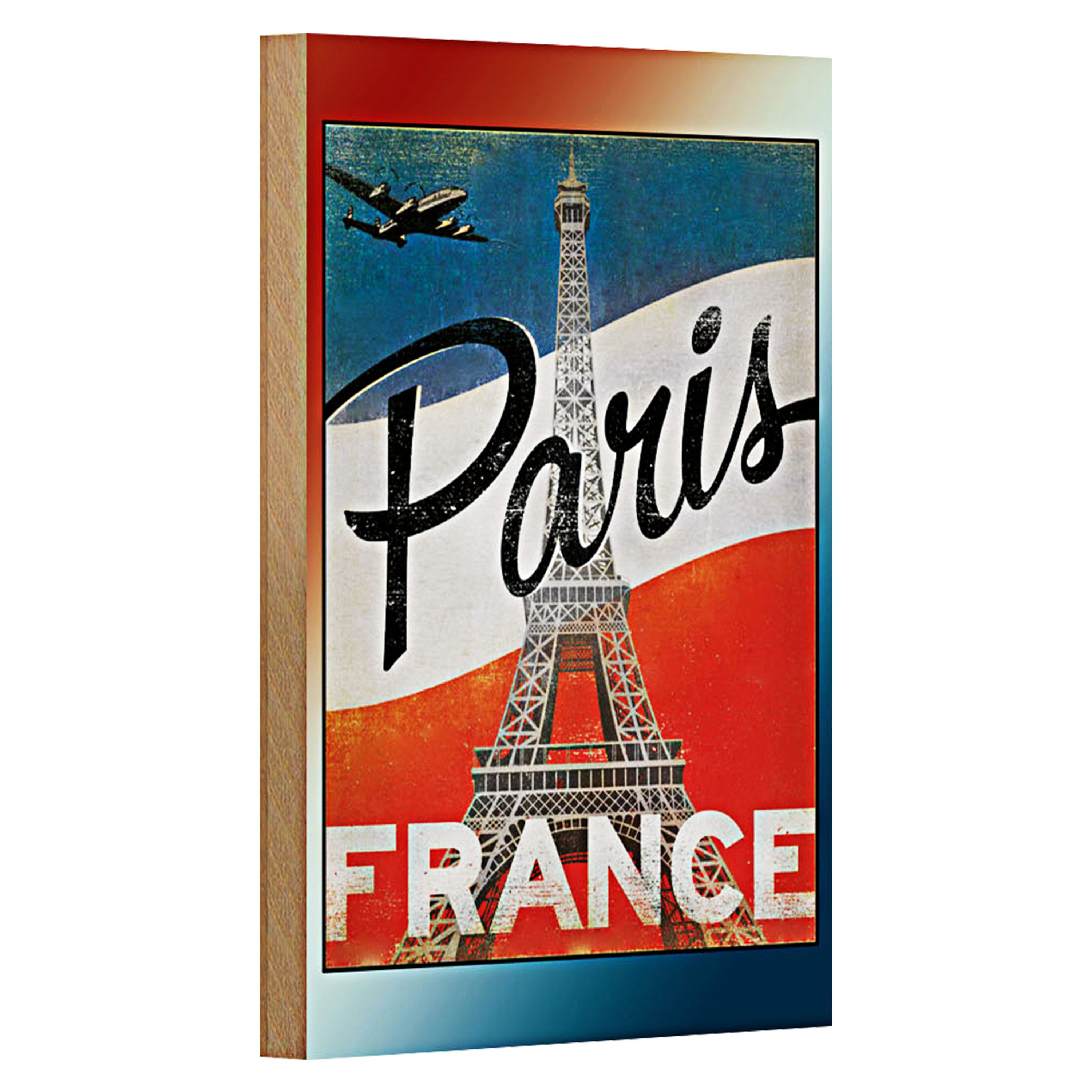 Tauchen Sie ein in die Romantik von Paris mit diesem charmanten Vintage-Holzschild. Der ikonische Eiffelturm erhebt sich majestätisch vor einem Hintergrund in den Farben der französischen Flagge. Ein nostalgisches Flugzeug zieht seine Bahn, während der Schriftzug 'Paris' in geschwungenen Lettern die Sehnsucht nach der Stadt der Liebe weckt. Perfekt für Liebhaber von Retro-Designs und Frankreich-Enthusiasten.Dieses Holzschild ist ideal für alle, die ihre Liebe zu Paris und Frankreich stilvoll zum Ausdruck bringen möchten. Perfekt als Dekoration für Zuhause, Büro oder als besonderes Geschenk.Schild aus qualitativ hochwertigem Holz. Keine scharfkantigen Stellen dank rundum umgeschlagene Kanten. Abgerundete Ecken mit vorgebohrten Löchern für eine einfache Befestigung an Wänden, Türen, Zäunen usw.