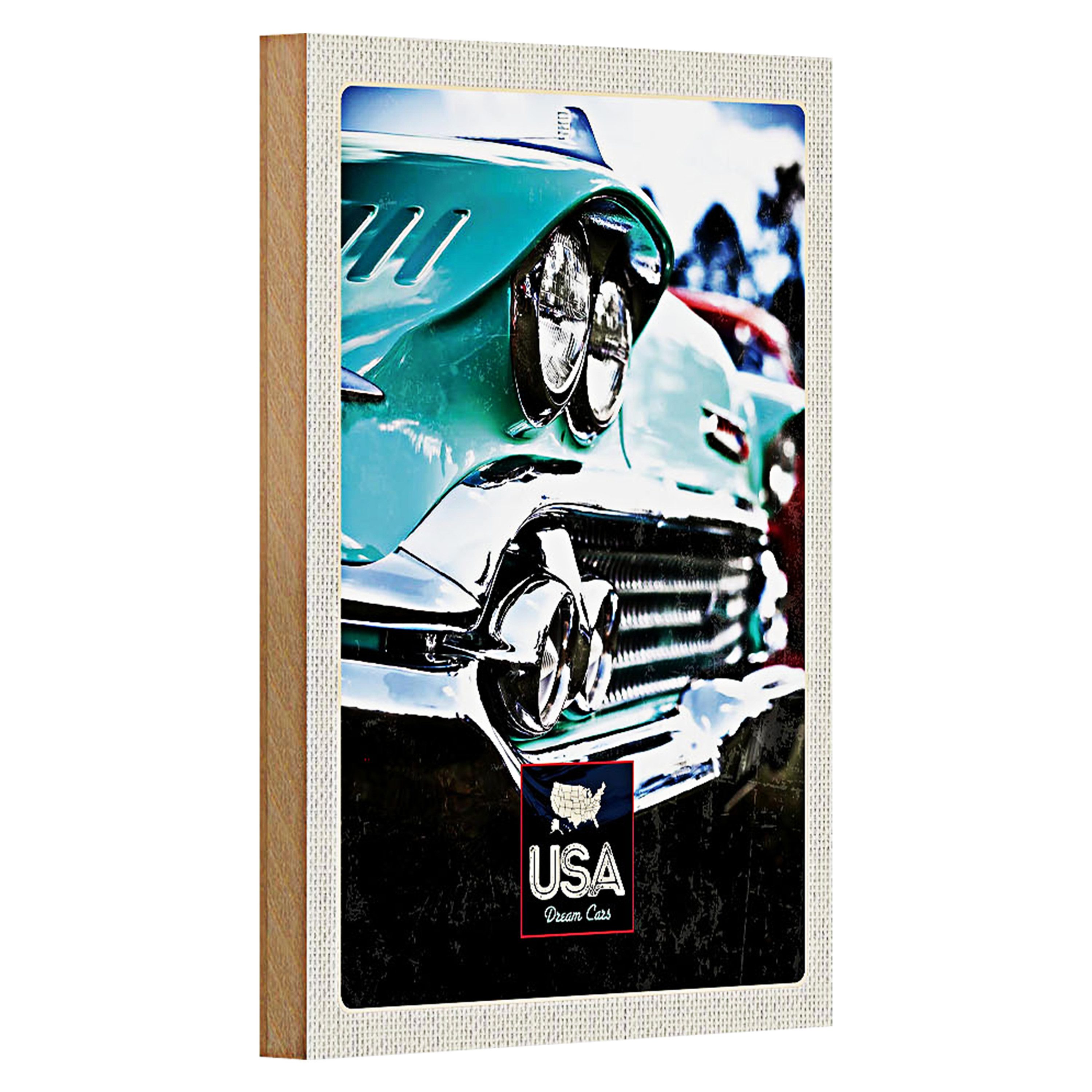 Tauchen Sie ein in die goldene Ära der amerikanischen Straßenkreuzer Dieses Holzschild fängt die Essenz von Freiheit und Abenteuer ein, die mit klassischen US-Autos verbunden ist.
