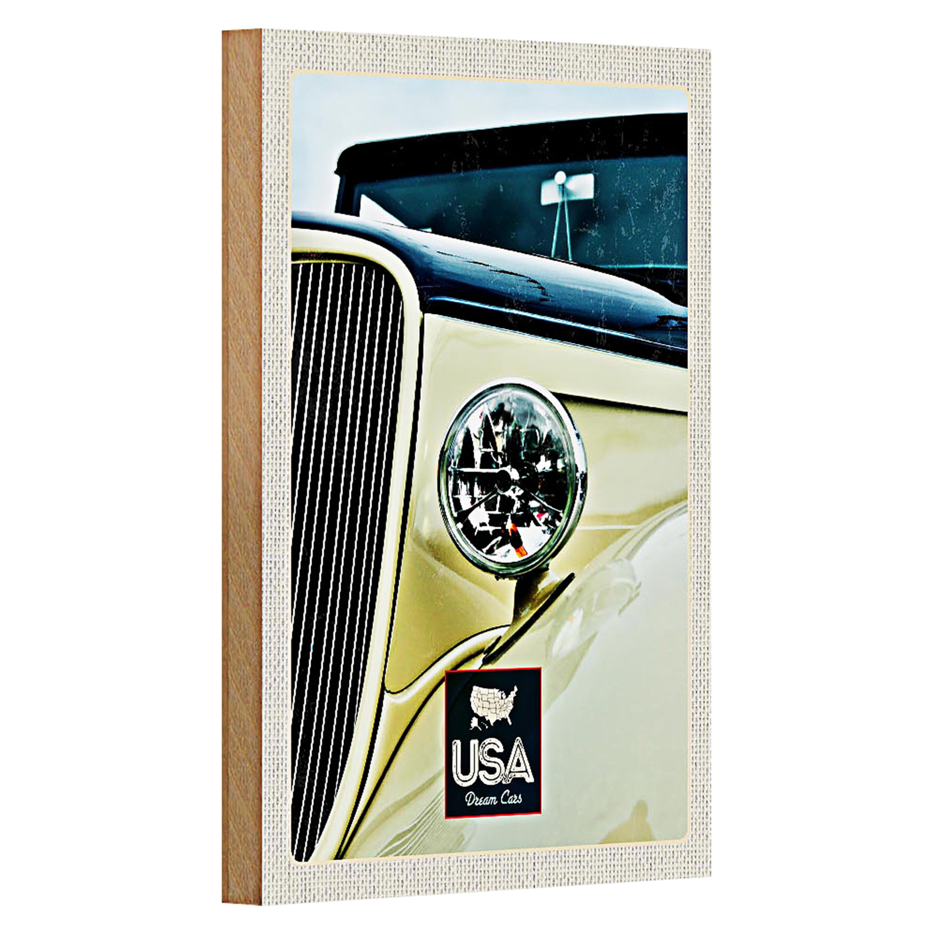 Tauchen Sie ein in die goldene Ära der amerikanischen Automobilgeschichte mit diesem charmanten Holzschild.