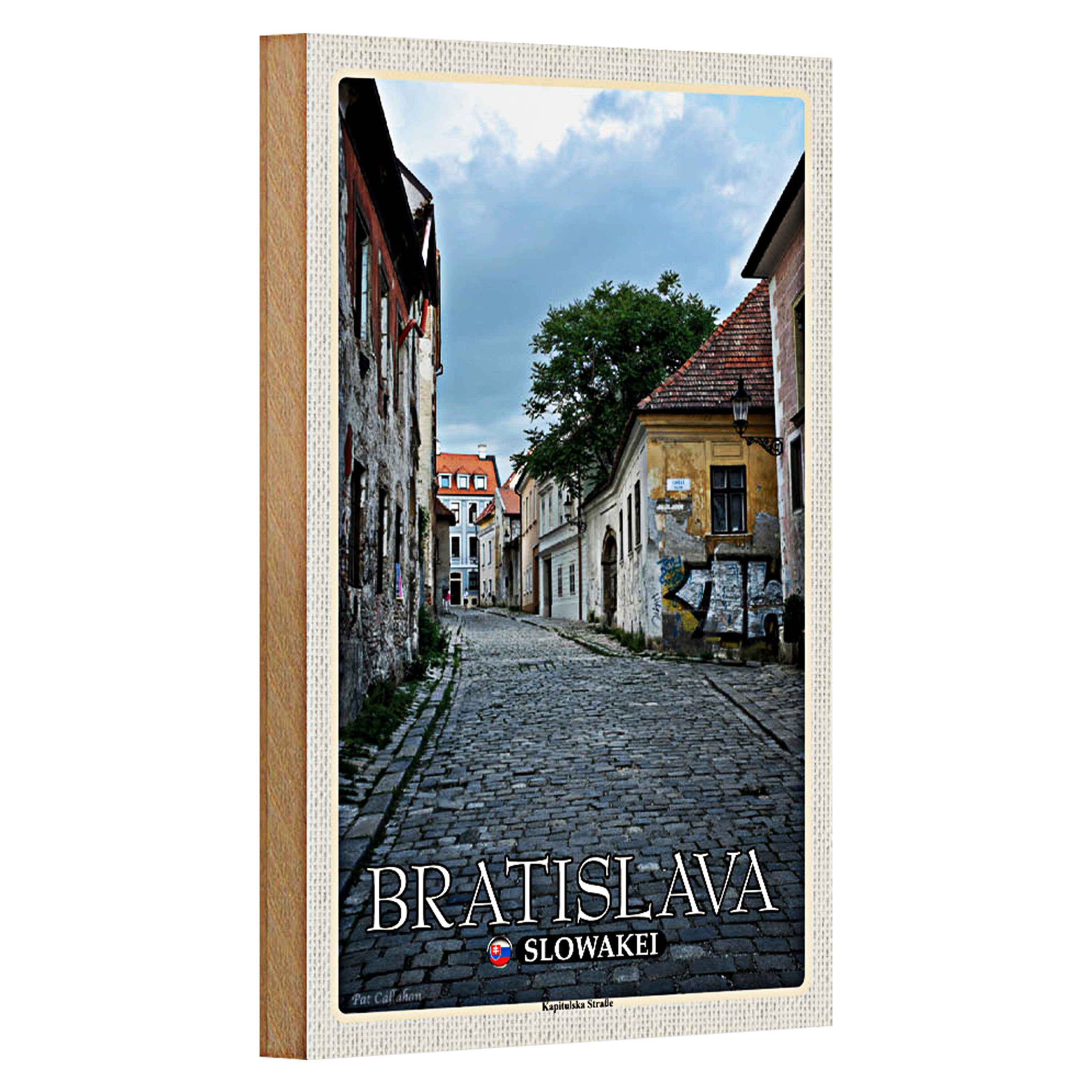 Tauchen Sie ein in die verwinkelten Gassen von Bratislava mit diesem charmanten Holzschild Ein Hauch von Geschichte und Kultur, der Ihre Wände schmückt und zum Träumen einlädt.