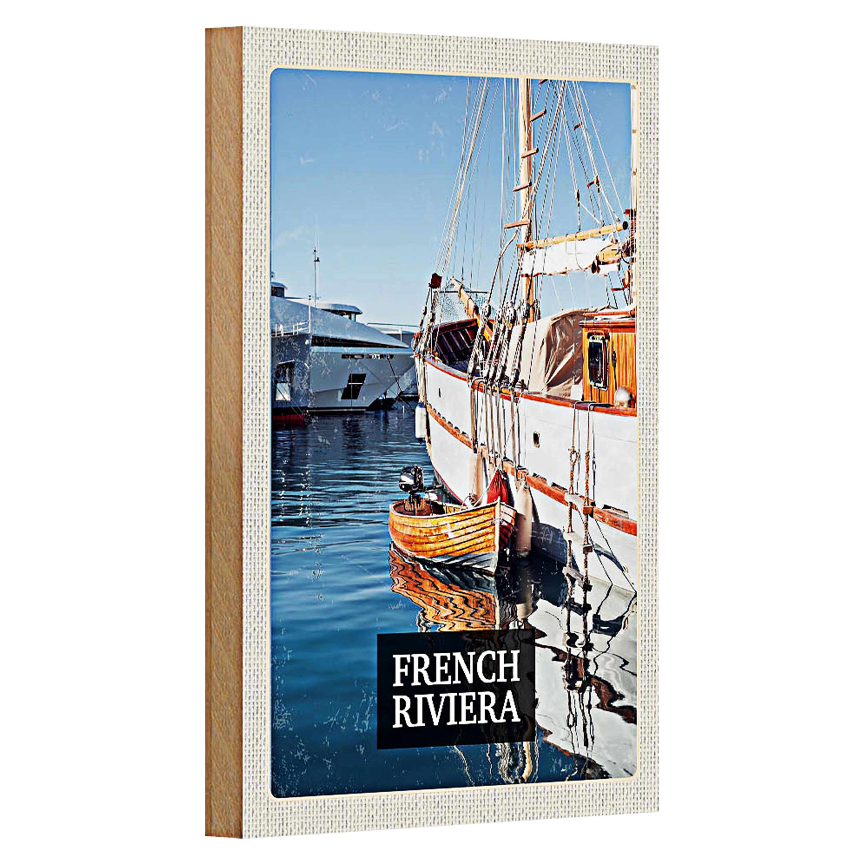Tauchen Sie ein in die Eleganz der Côte d'Azur mit diesem charmanten Holzschild.