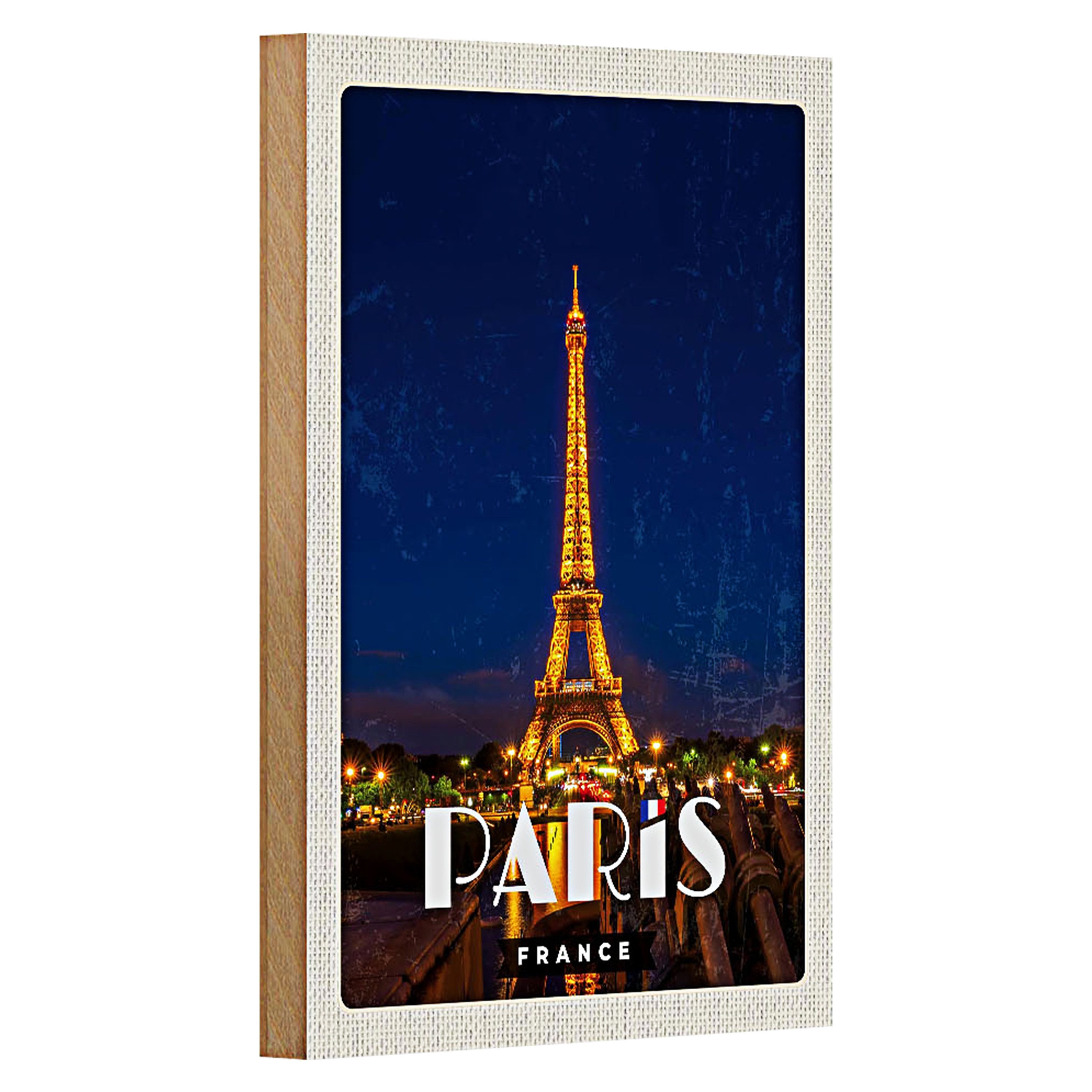 Dieses Holzschild fängt die Magie von Paris bei Nacht ein Der Eiffelturm, majestätisch beleuchtet, strahlt eine zeitlose Eleganz aus, die jeden Raum verzaubert.