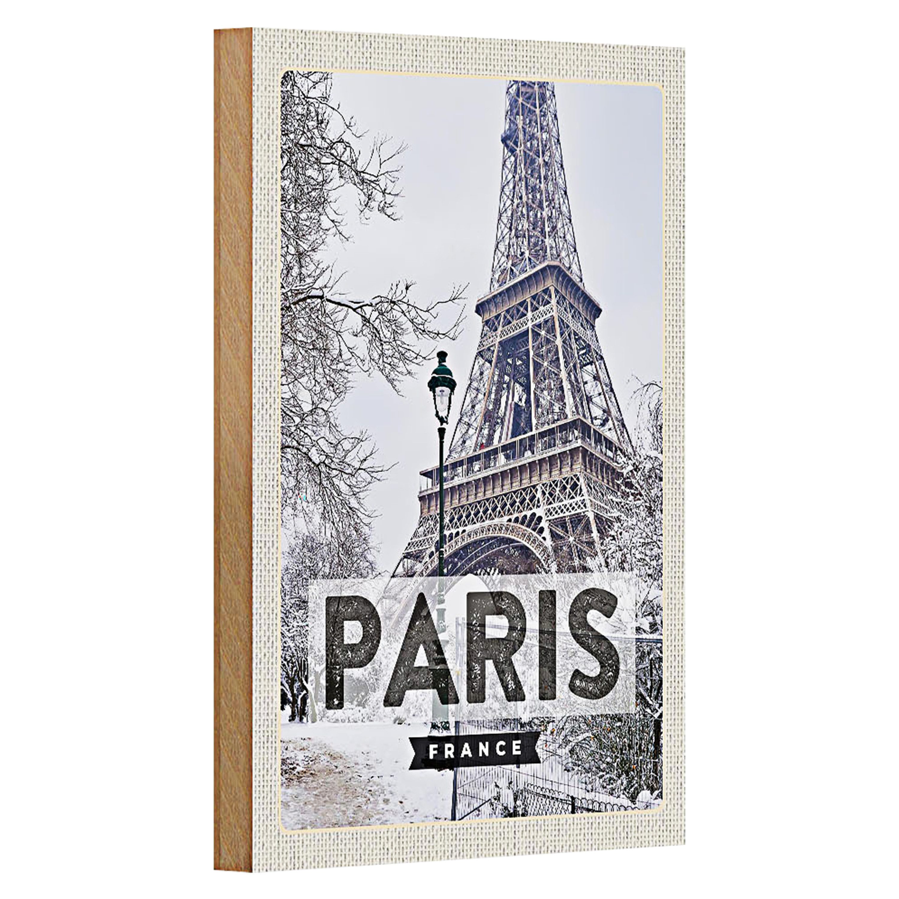 Erleben Sie die Magie von Paris in Ihrem Zuhause mit diesem charmanten Holzschild Der Eiffelturm, majestätisch im Winterkleid, fängt die Essenz der Stadt der Lichter ein.