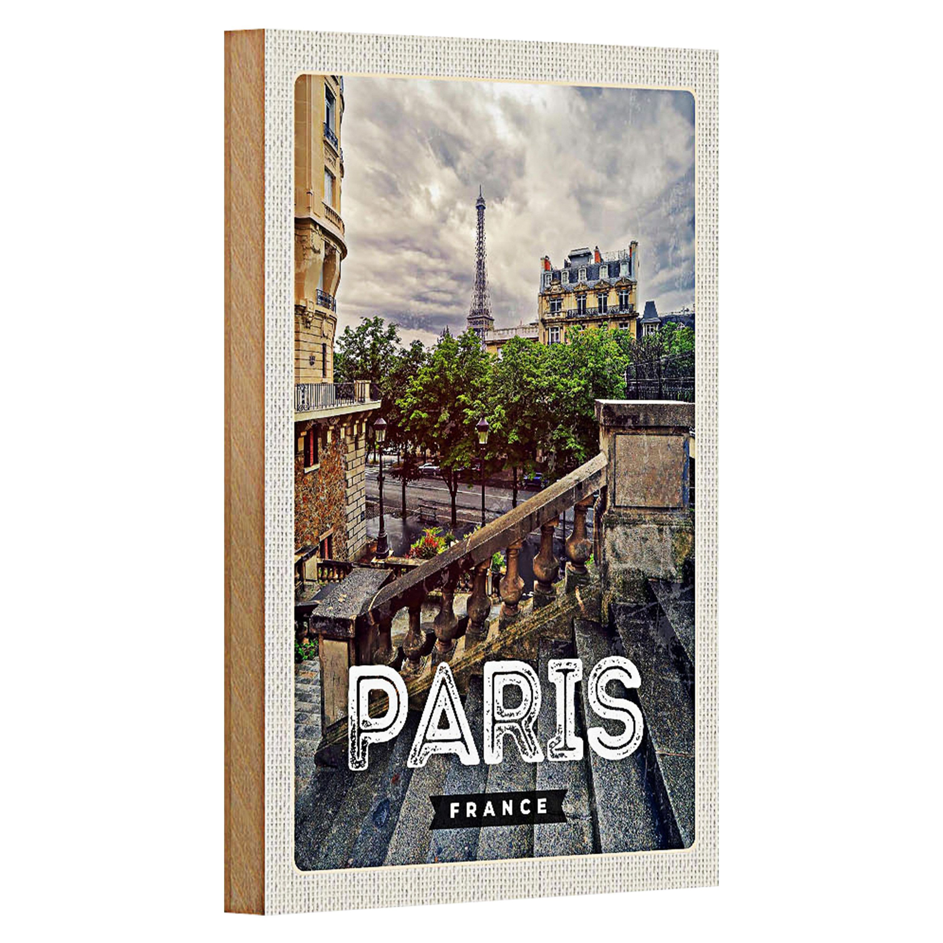 Ein Hauch von Paris für Ihr Zuhause Dieses nostalgische Holzschild fängt die Magie der Stadt der Lichter ein, mit einem Blick auf den ikonischen Eiffelturm.