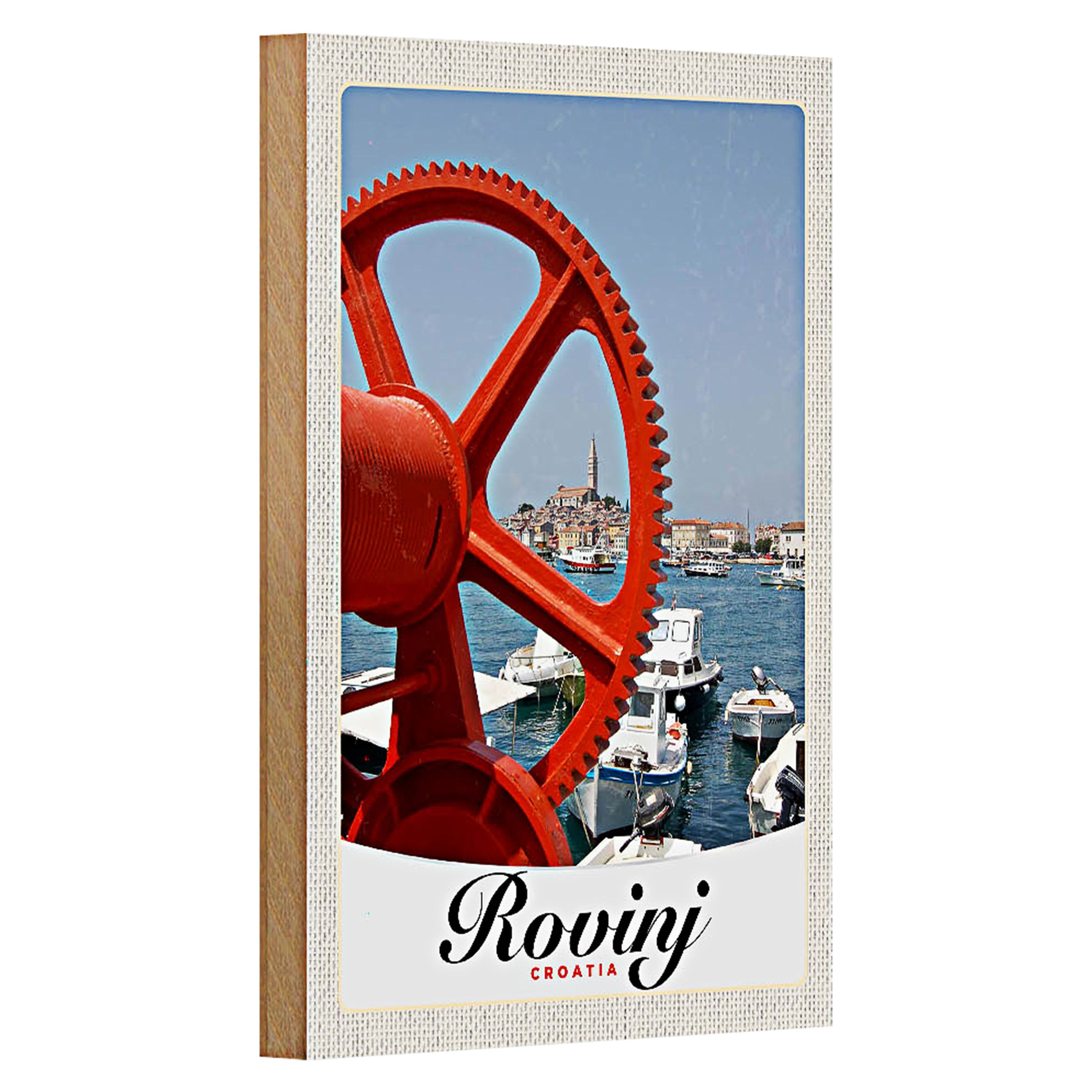 Entdecken Sie die malerische Schönheit von Rovinj mit dieser charmanten Holzpostkarte.