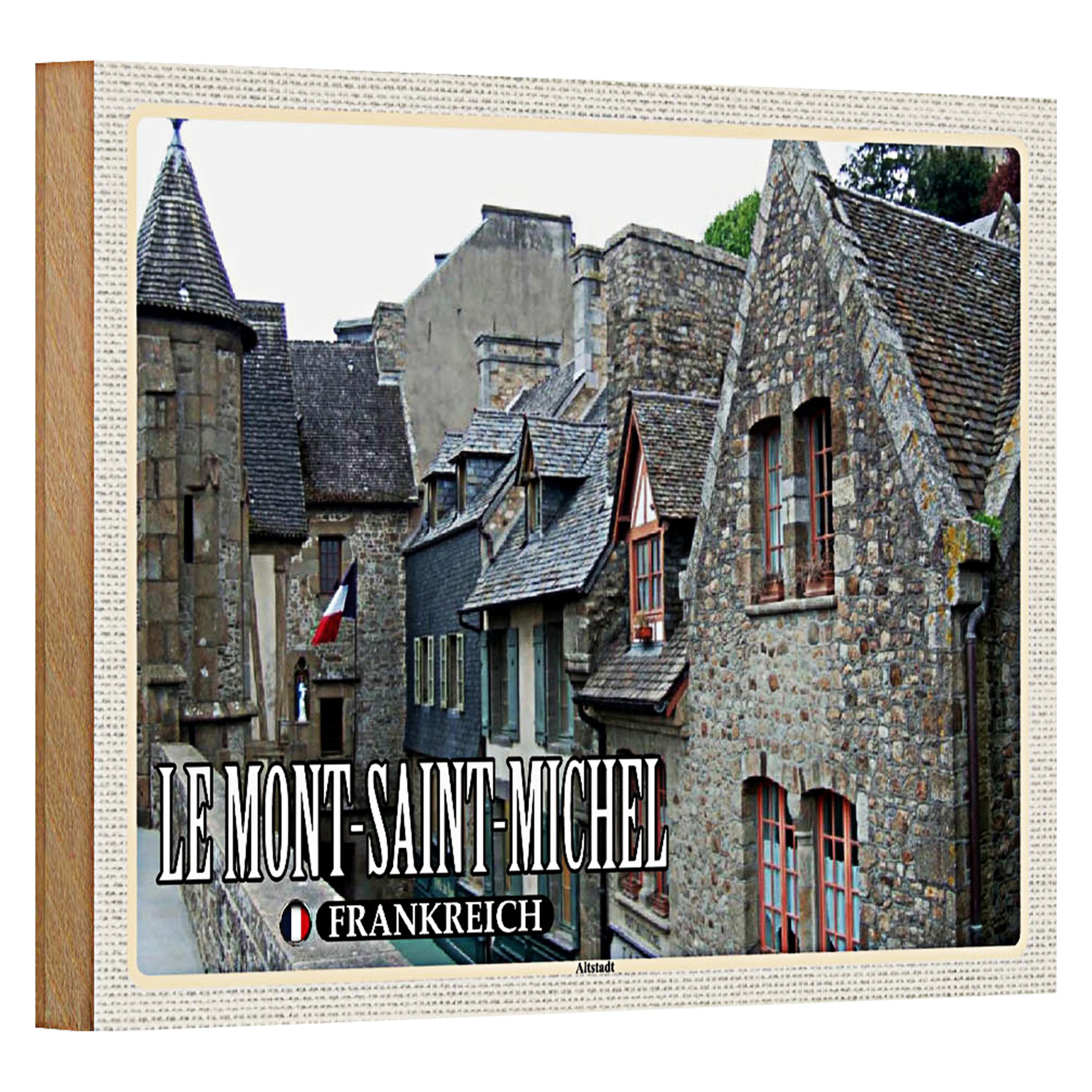 Tauchen Sie ein in die historische Pracht von Le Mont-Saint-Michel mit diesem charmanten Holzschild.