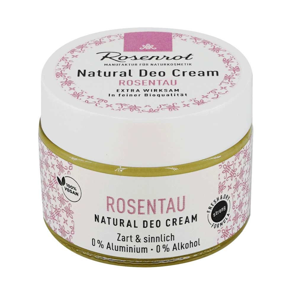 Die Rosenrot Deocreme mit der innovativen "Fresh and Dry" Formel ist zu 100% natürlich und durch Natron trotzdem besonders effektiv gegen Schweiß. Überzeugen Sie sich selbst!