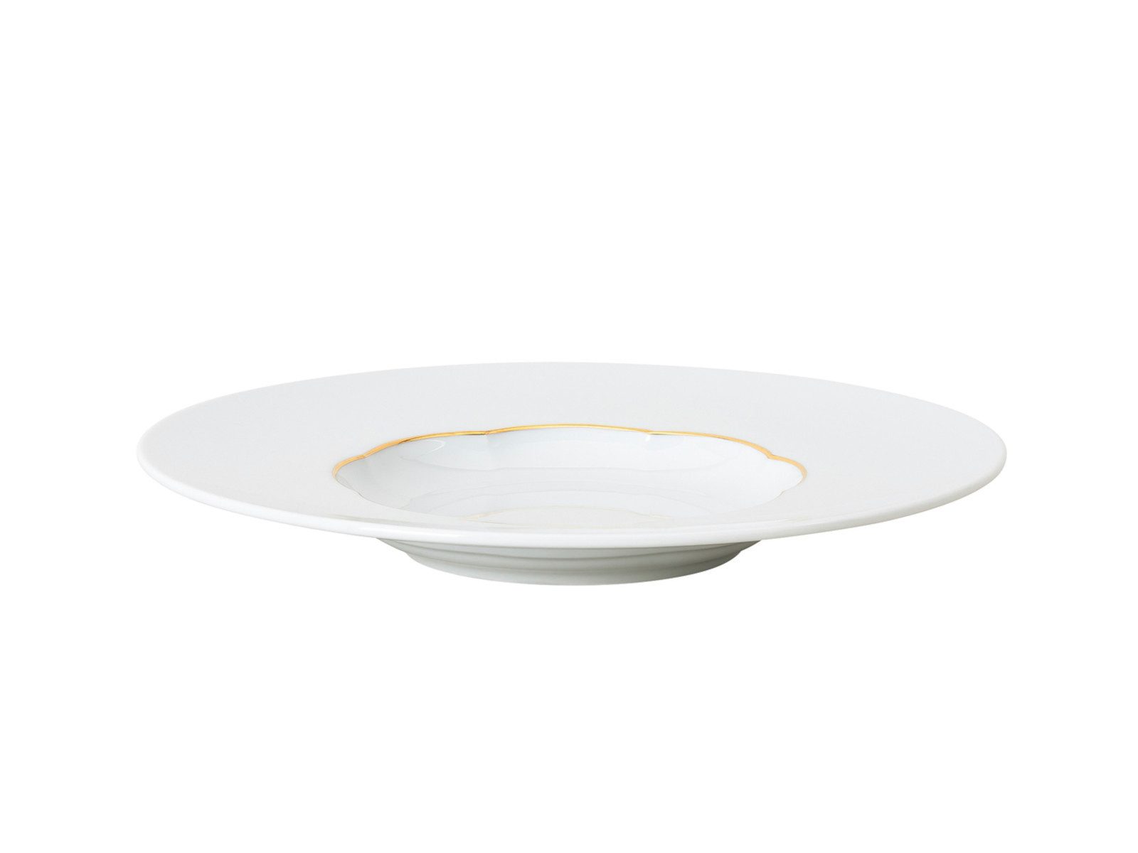 Der Rosenthal Sonetto Oro tiefe Teller mit 26 cm Durchmesser kombiniert klassische Eleganz mit luxuriöser Veredelung. Die harmonische Verbindung aus edlem Weiß und feinen Goldakzenten macht ihn zu einem stilvollen Hingucker auf jeder Tafel. Seine sanft vertiefte Form eignet sich ideal für Pastagerichte, Suppen oder raffinierte Speisen mit Saucen.