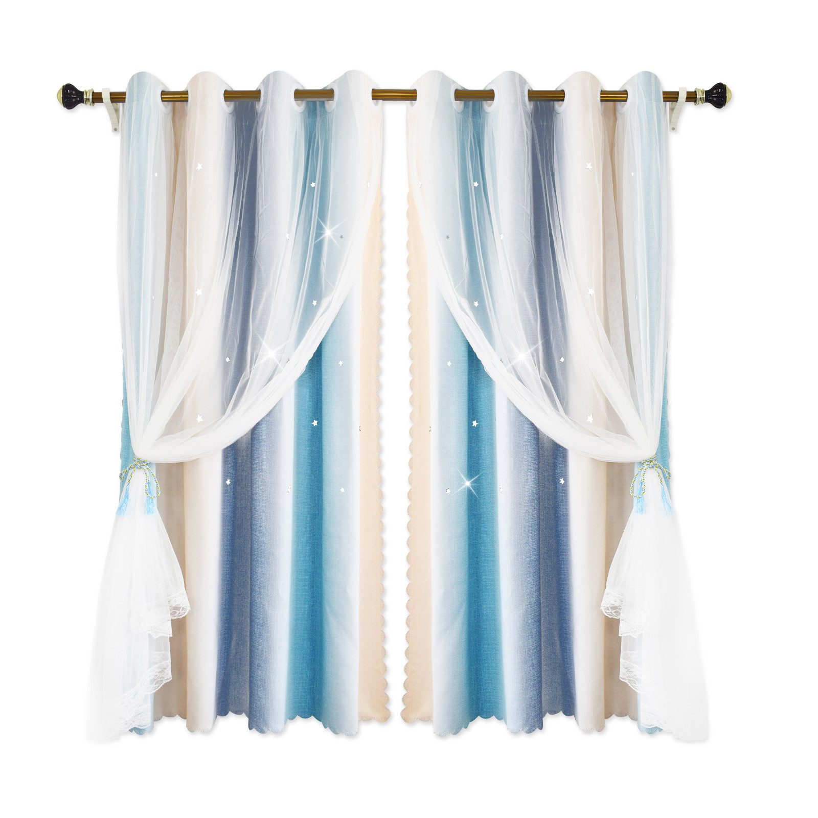 1. Ein Paneel des Vorhangs hat eine Spitzenschleife.