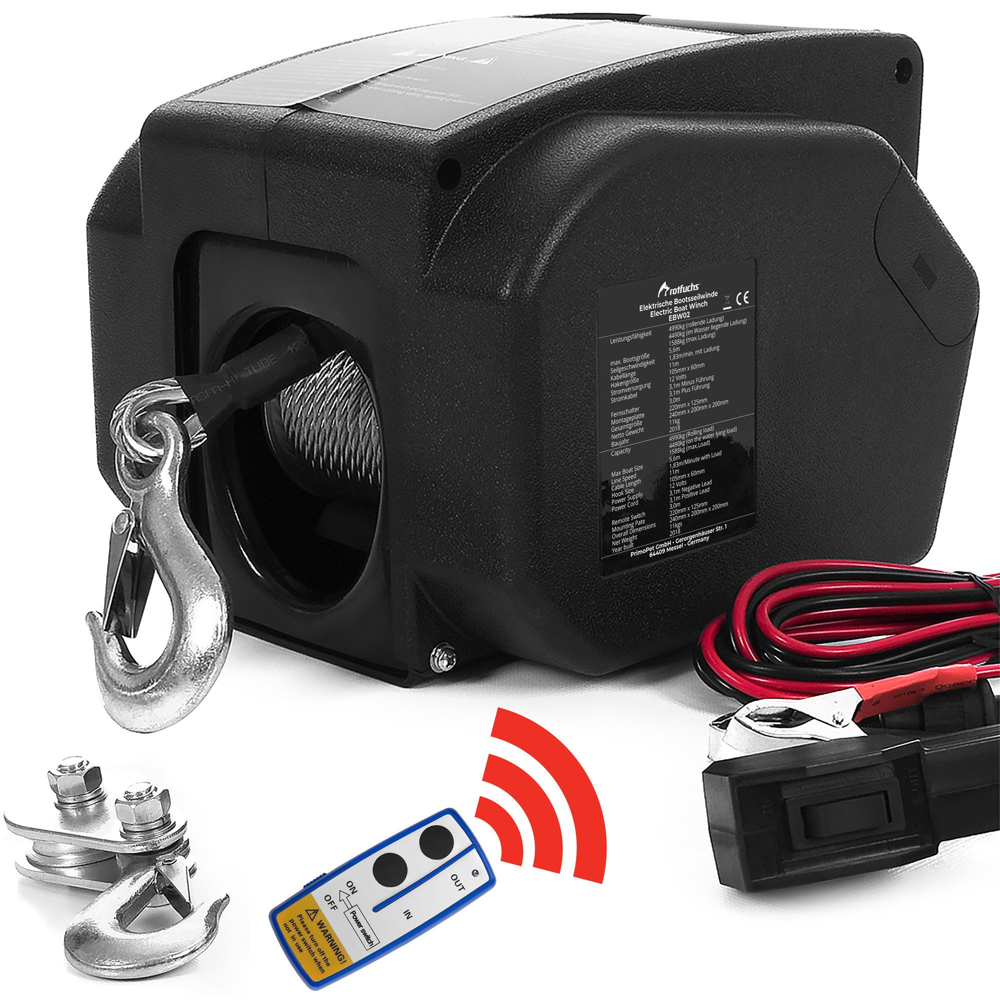 Robuste und zuverlässige Helfer für verschiedene Einsatzgebiete. Die Original elektrische ROTFUCHS Seilwinde ist besonders stark und universell einsetzbar, mit einer enormen Zugleistung von max. 4990kg (rollende Ladung) und 4490 kg (im Wasser liegenden Ladung), inkl. schnell montierter Adapterplatte zum Einhängen an die Anhängerkupplung ist sie ein zuverlässiger Helfer. Sie ist ausgestattet mit robustem Befestigungshaken und Umlenkrolle für doppelte Zugkraft. Die Bootsseilwinde ist manuell oder per drahtlosen Funkfernbedienung bedienbar.