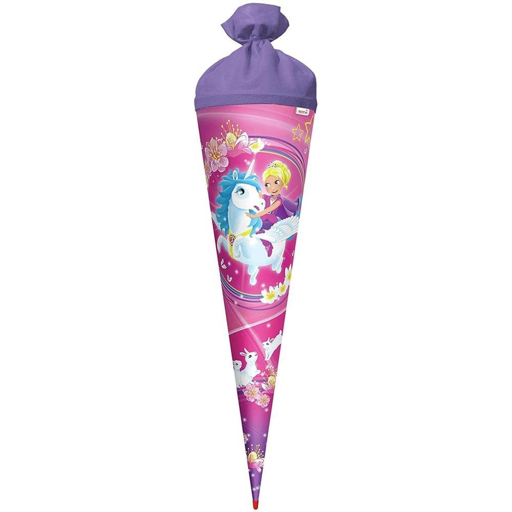 Diese Schultüte entlockt jedem ein "Oh, wie süß!" Die innige Verbundenheit der kleinen Prinzessin mit ihrem Einhorn machen einfach glücklich. Auf dem Motiv kuschelt die Prinzessin mit ihrem Einhorn. Umringt werden beide von hübschen Blumen und süßen Hasen.