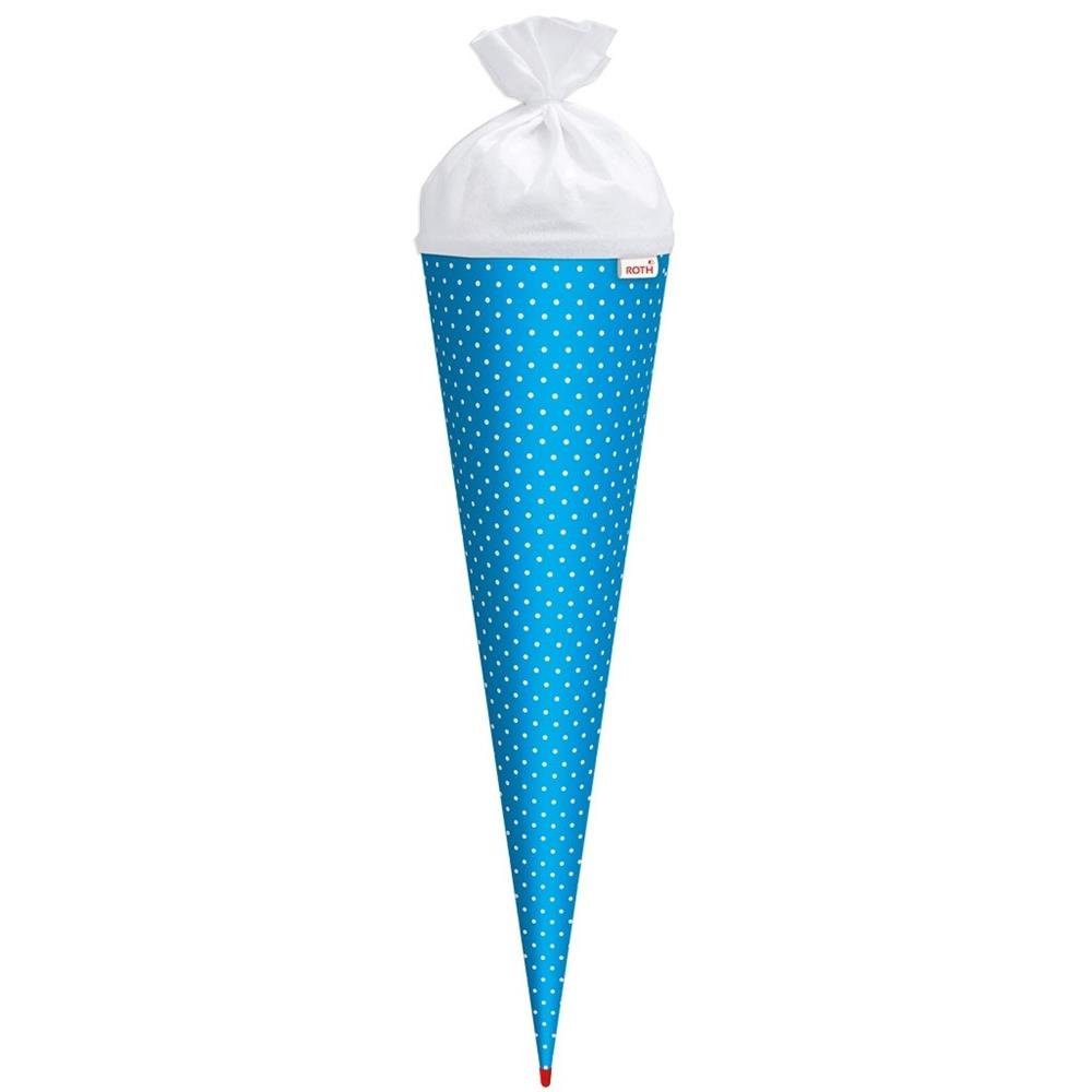 Der perfekte Begleiter zur Einschulung ist die Zuckertüte Pazifikblau mit weißen Punkten. Hergestellt aus Pappe mit Filzverschluss.