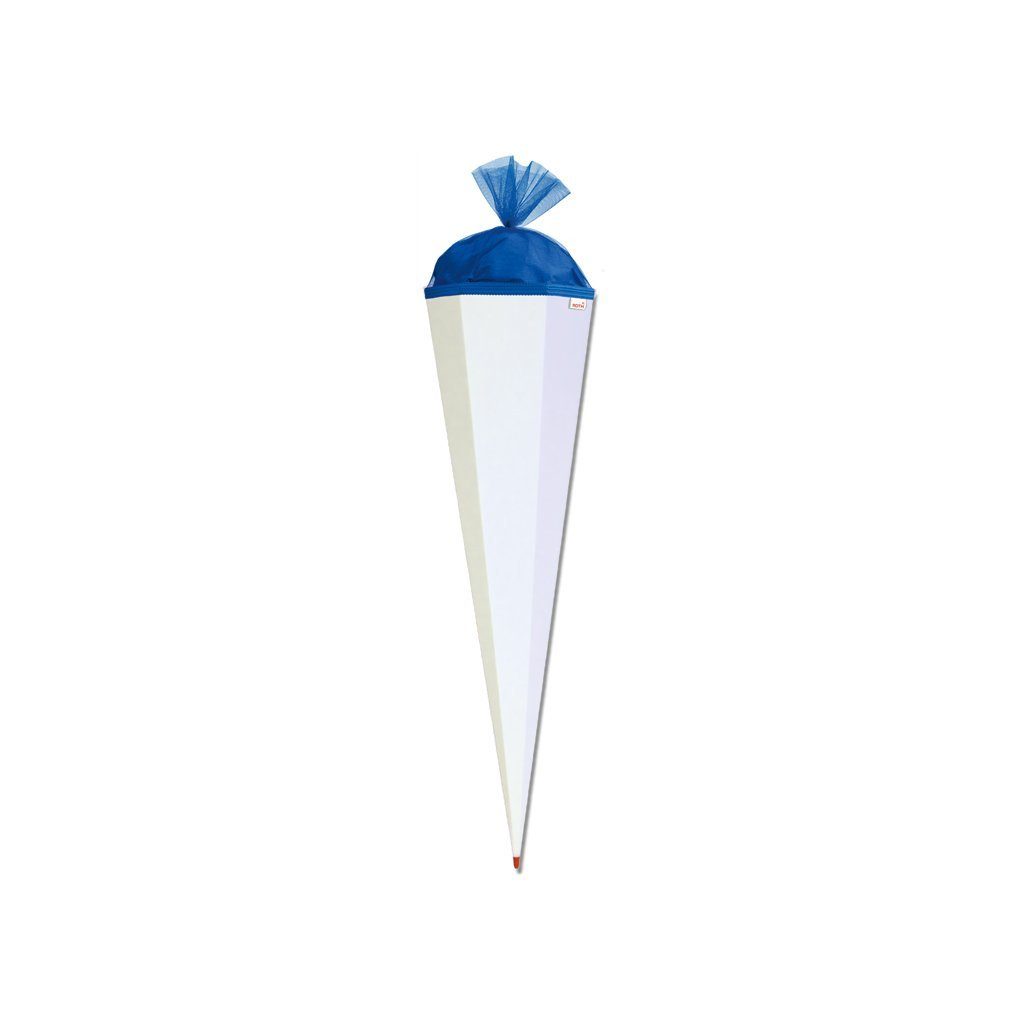 Insgesamt ist die Basteltüte 85 cm lang und hat einen Durchmesser von 24,5 cm. Da an dieser Schultüte bereits ein Tüllverschluss angebracht wurde, kann man sie leicht mit einer Schleife zuschnüren. Zu beachten ist die rote Spitze am unteren Ende der Tüte. Sie ist aus Holz gefertigt und ein Erkennungsmerkmal der Firma Roth. Eine speziell verzierte Borte am oberen Rand der Tüte gibt der Schultüte ihren gewissen Charm. Die Schultüte ist als Tradition aus Detuschland nicht mehr wegzudenken. Bis heute dient sie dazu, den Kindern den Weg in die Schule zu versüßen.