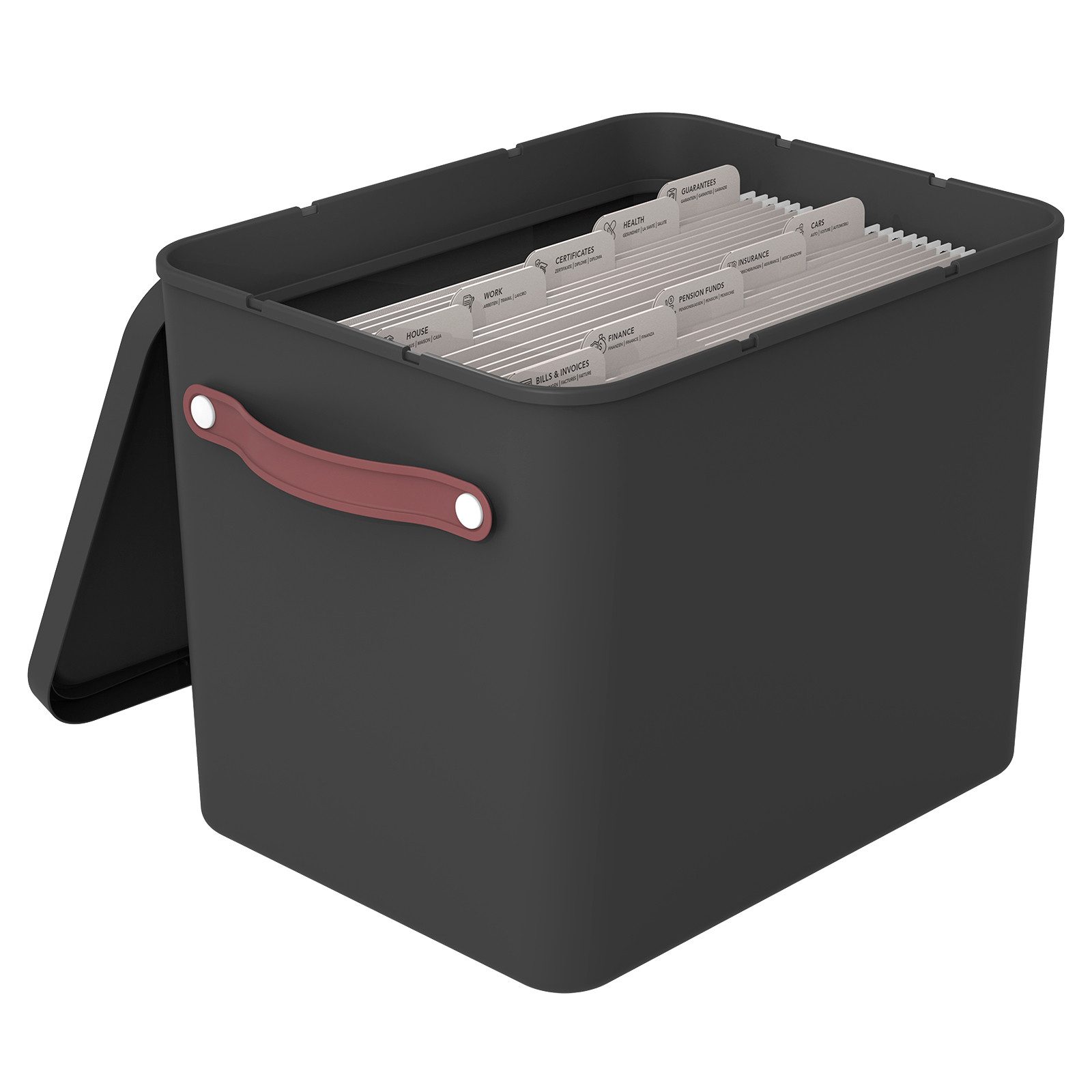 Zusätzlich überzeugt die MyPaper Plus Archivbox durch ihre praktischen und durchdachten Eigenschaften: Die integrierten Griffe machen den Dokumenten Organizer leicht transportierbar – ideal für den flexiblen Einsatz in verschiedenen Räumen.