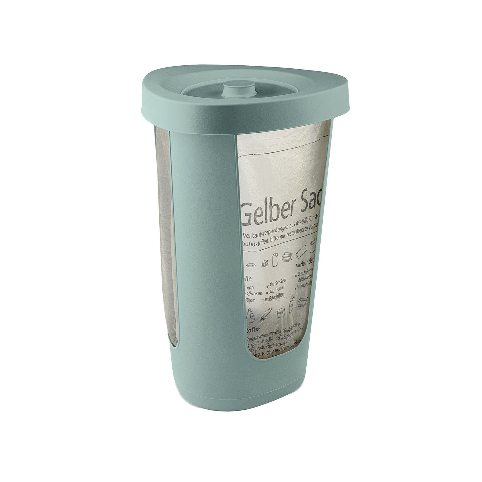 Der ECO Müllsackständer bietet den idealen Platz für den Gelben Sack oder andere Müllbeutel, welche bequem an den drei abgerundeten, flexiblen Ecken befestigt und genau so leicht wieder herausgenommen werden. Außerdem schliesst der Deckel sicher und geruchsdicht ab. Der Müllsackständer ist "Blauer Engel" zertifiziert und somit erfüllt das Produkt Umweltstandards, die mehrere Stufen des Produktlebenszyklus betrachten.