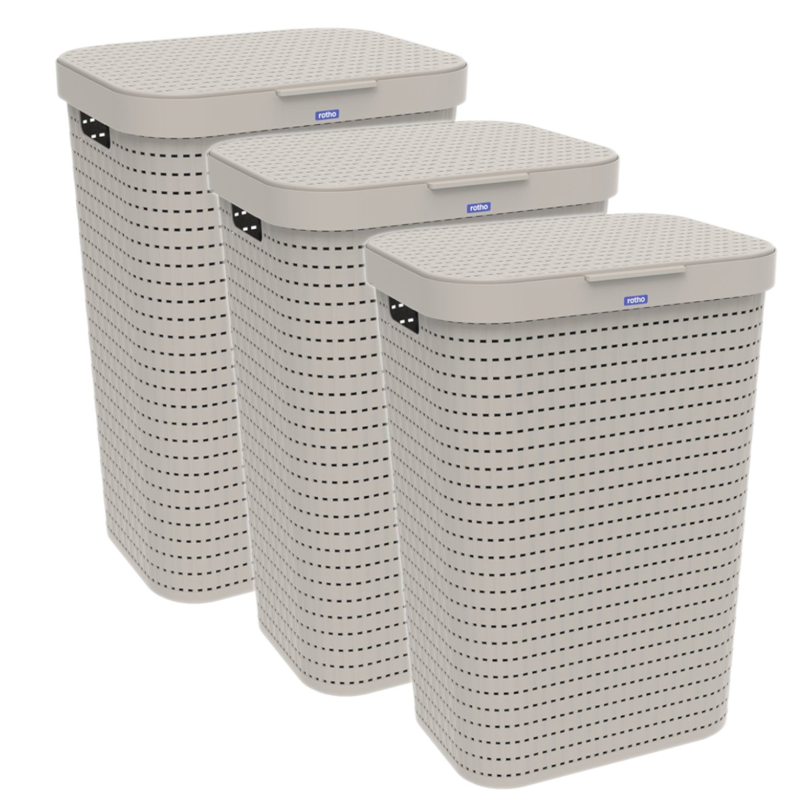 Der Wäschesammler Country von Rotho vereint wunderschönes Design mit der Pflegeleichtheit des Kunststoffs und ist damit ideal für das Sammeln Ihrer Wäsche geeignet. Der Deckel ist mit Filmscharnieren am Unterteil angebracht und lässt sich komplett aufklappen, was für einfaches Befüllen der Wäschekiste sorgt. Die Wäschetonne verfügt ausserdem über zwei praktische Tragegriffe an den Seiten für einfaches Tragen zur Waschmaschine. Hochwertiges Material und gute Hygiene Durch die aufwändige Rattan-Optik hat die Wäschetonne auf allen vier Seiten und dem Deckel Luftlöcher, welche für Luftzirkulation innerhalb der Wäschebox sorgen. Dadurch wird unangenehmen Gerüchen nach längerem Liegen von Schmutzwäsche entgegengewirkt. Das dezente Design passt zu verschiedenen Wohnstilen und so ist der Wäschesammler ideal für das Bade-, Schlaf- oder auch fürs Kinderzimmer geeignet. Der hochwertige Kunststoff und die gute Verarbeitung sorgen für eine lange Lebensdauer des Produkts.