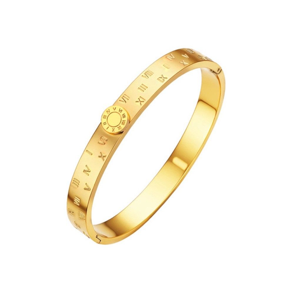 Entdecken Sie die zeitlose Schönheit und die moderne Eleganz unseres Edelstahl Armreifs im stilvollen römischen Zahlendesign. Dieser Armreif vereint klassisches Design mit zeitgemäßer Robustheit und eignet sich perfekt für jeden Anlass – ob lässig im Alltag oder elegant bei besonderen Veranstaltungen. Aus robustem Edelstahl gefertigt, bietet dieser Armreif eine beeindruckende Langlebigkeit und Widerstandsfähigkeit. Die 18K Hochglanzvergoldung verleiht dem Armreif nicht nur einen luxuriösen Look, sondern macht ihn auch wasserfest – ideal für alle, die ihren Schmuck gerne im Alltag tragen.