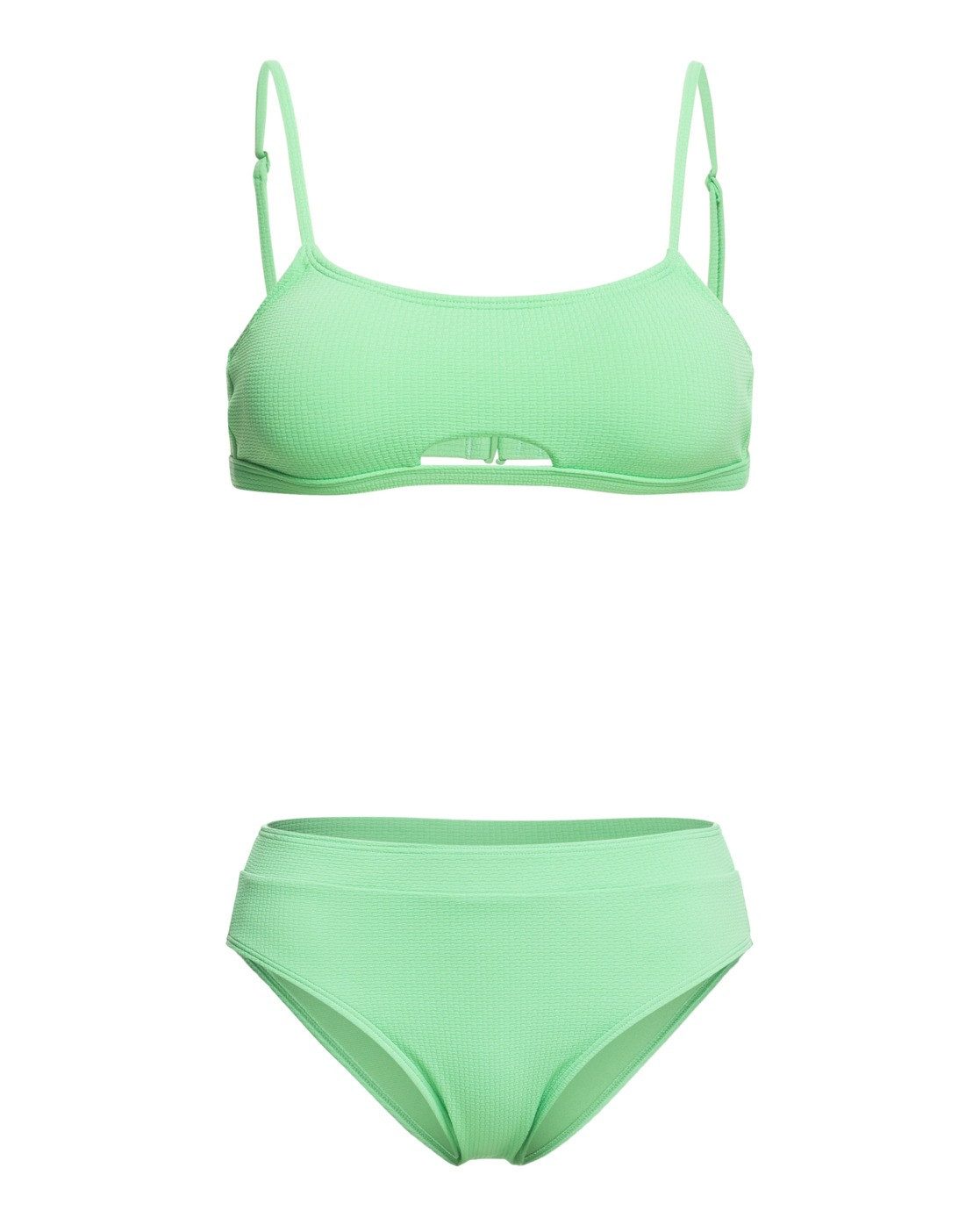 roxy Color Jam - Bralette Two Piece Bikini Set for Women Color Jam - Bralette Bikini-Set für Frauen Bralette Bikini-Set für Frauen. Die Eigenschaften dieses Produkts sind: Material: Weiches, , widerstandsfähiges und dehnbares strukturiertes Nylon-Mischgewebe, Bralette-Form, Rundhalsausschnitt, verstellbare Träger mit Ringen und Schiebern, Haken mit 3 Löchern für verschiedene Длинаn hinten, reguläre Unterstützung, herausnehmbare Polsterung, Am besten geeignet für A/B/C, Bedeckung Oberteil: moderate Bedeckung, Bedeckung Unterteil: Hipster-Bedeckung, TailleHoher Bund, Logo: ROXY-Plakette aus Gummi, Впередe Merkmale: Keyhole-Design für einen femininen Touch, Modischer Schnitt mit mittelhohem Bund für einen besseren Sitz, Bund mit Gürtel für mehr Halt, Leicht höhere Beinöffnung für einen schmeichelhafteren Look, Nahtlose Beinöffnung um deinen Kurven zu schmeicheln, ZZ-Nähte innen an den Beinöffnungen und um ein Aufrollen des Stoffes zu verhindern.