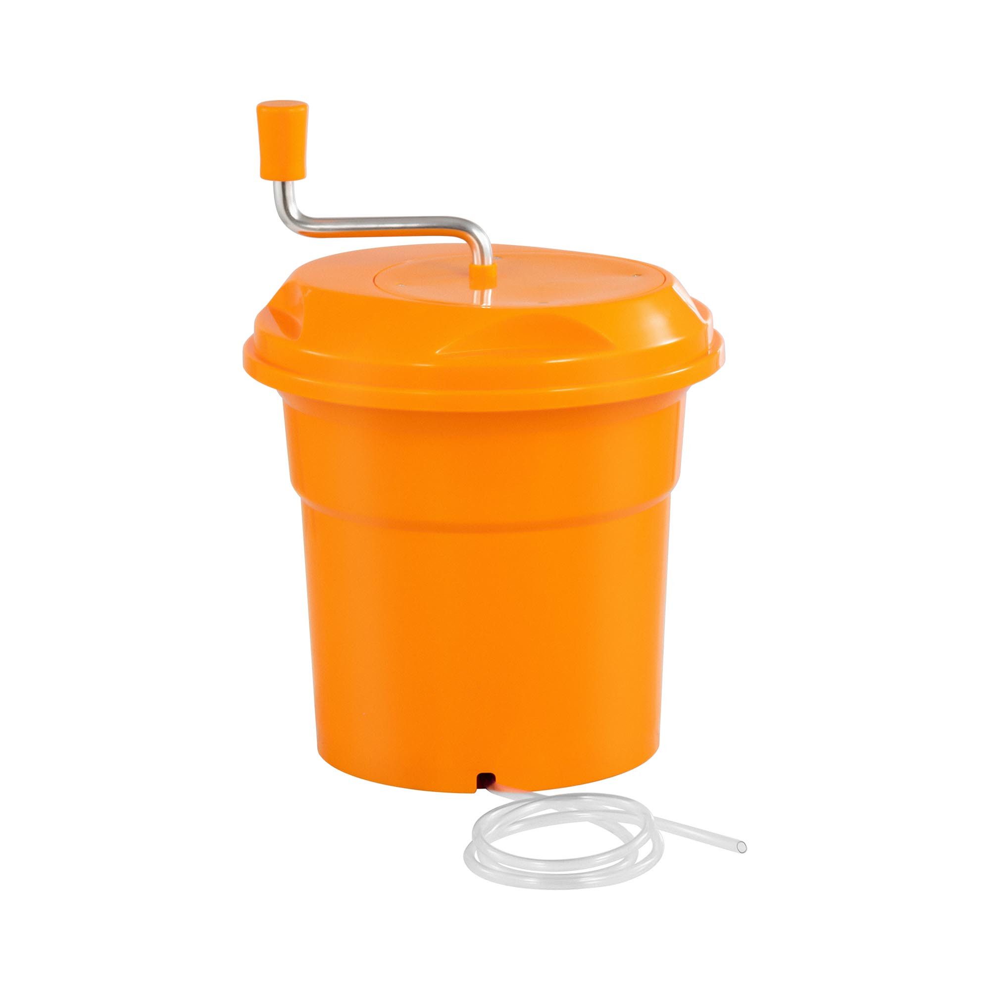 Die Handhabung des Salatsiebs ist einfach wie effektiv. Der Salat wird in das Sieb des Behälters gelegt, der Deckel geschlossen und schon kann es losgehen: Mithilfe einer handlichen Kurbel wird das Sieb gedreht und die Zentrifugalkräfte entfernen gründlich das Wasser, das sich nach dem Waschen auf dem Salat gesammelt hat. Über einen Schlauch wird das Restwasser aus dem Behälter geführt, sodass es den Salat nicht nochmals befeuchten kann. Das Ergebnis: sauberer Salat, der darauf wartet Ihre Gäste als vitaminreiche Kreation glücklich zu machen.