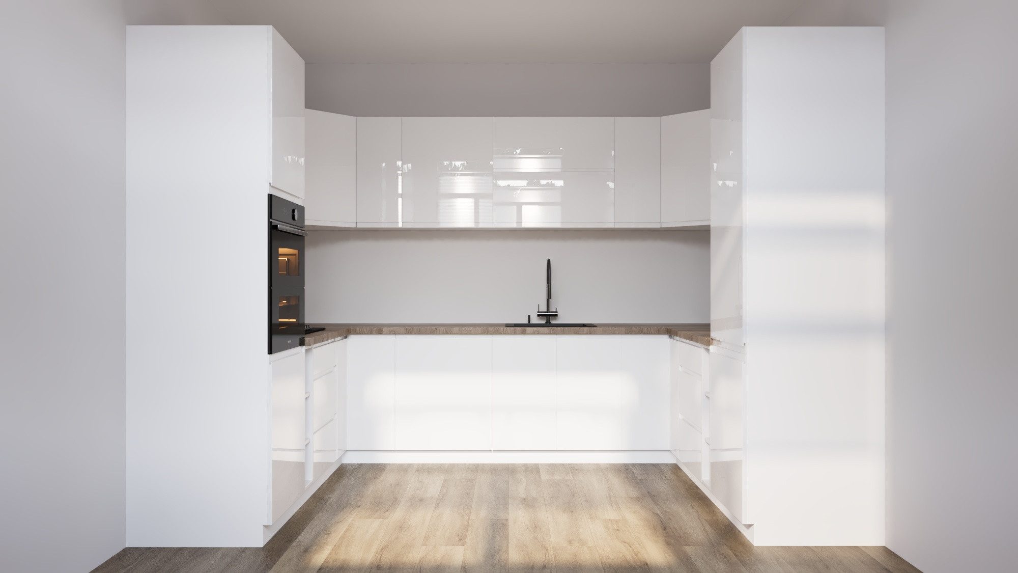 Küchenmöbel-Set Aspen 230 x 320 × 230 cm – Grau / Hochglanz Oder Weiß / Hochglanz