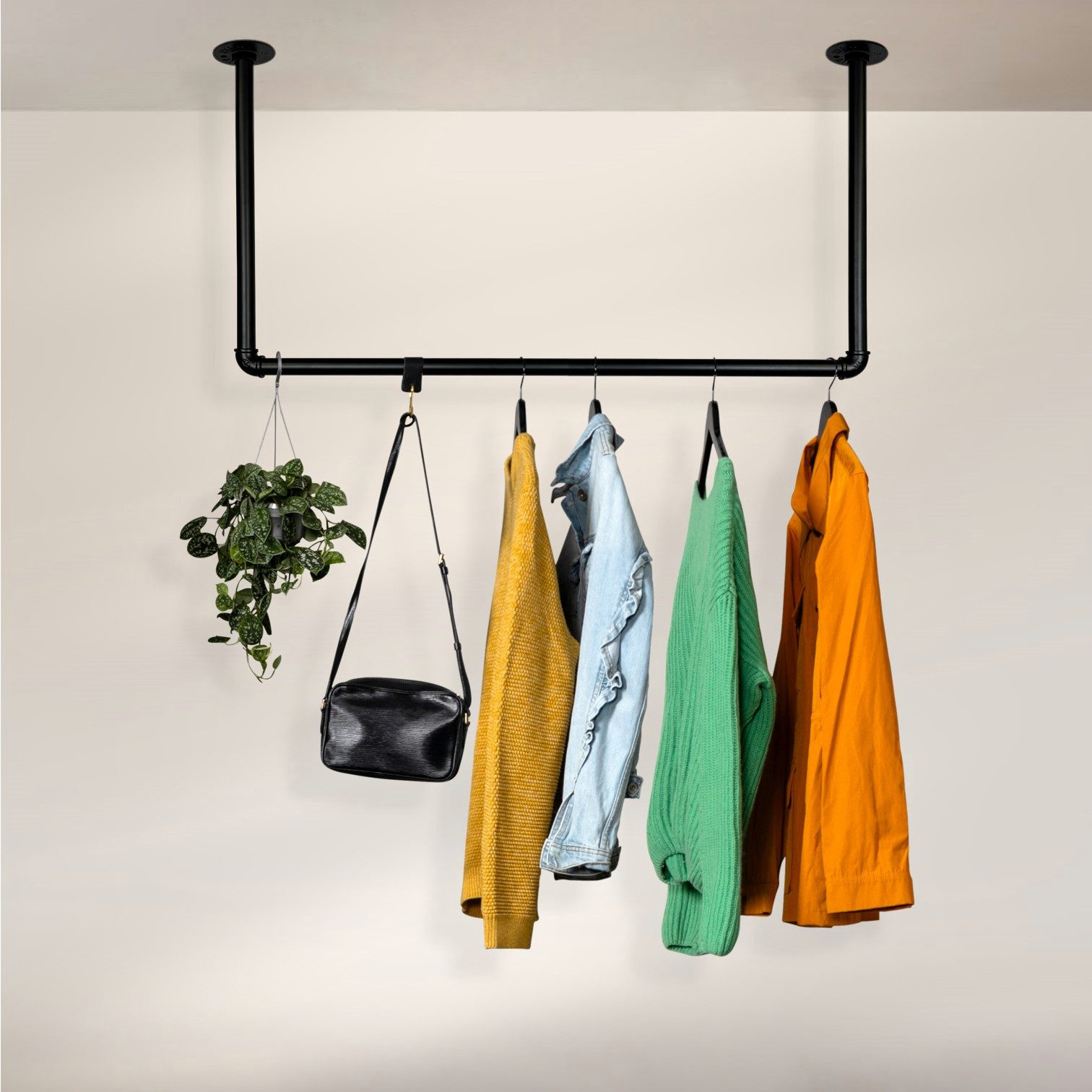 • Funktionalität trifft auf Ästhetik. Die Kleiderstange im Industrial Design ist nicht nur ein ästhetisches Element, sondern auch äußerst funktional.