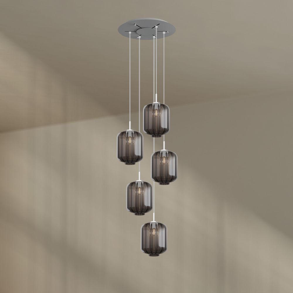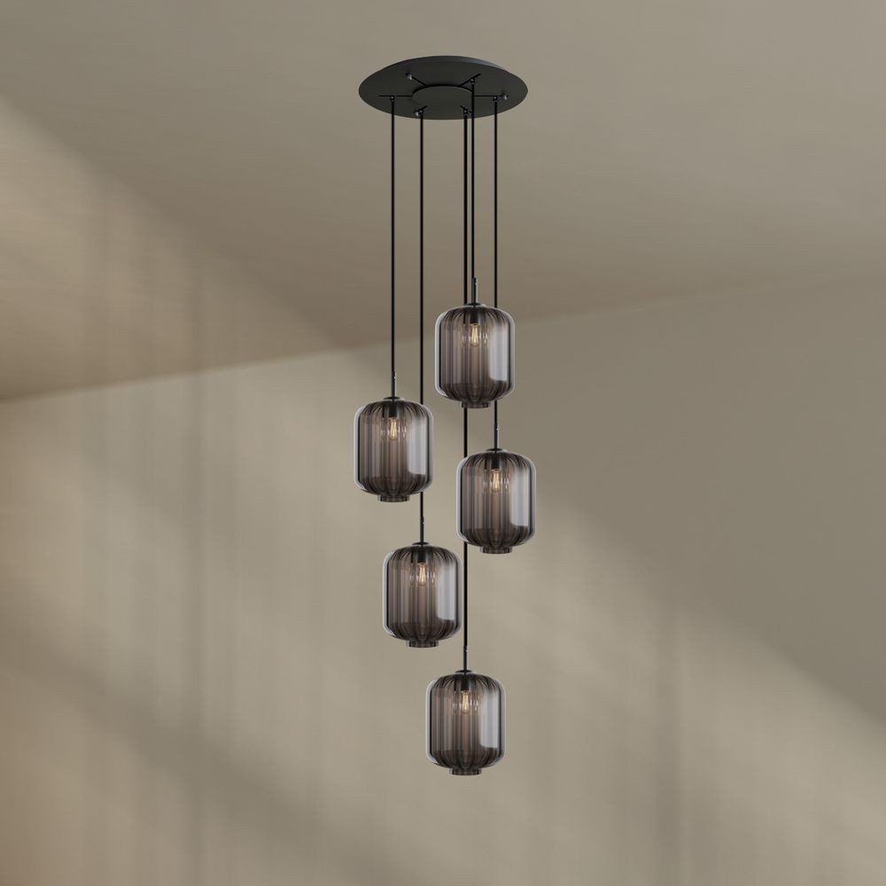 Die s.luce Velo 5-flammige Galerieleuchte bringt zeitlose Eleganz in moderne Wohn- und Objektbereiche. An einem hochwertigen s.luce Modular Baldachin mit 60 cm Durchmesser hängen fünf edle Glaspendel – ideal arrangiert über offenen Treppen, kleineren Lufträumen oder gemütlichen Wohn-Essbereichen.