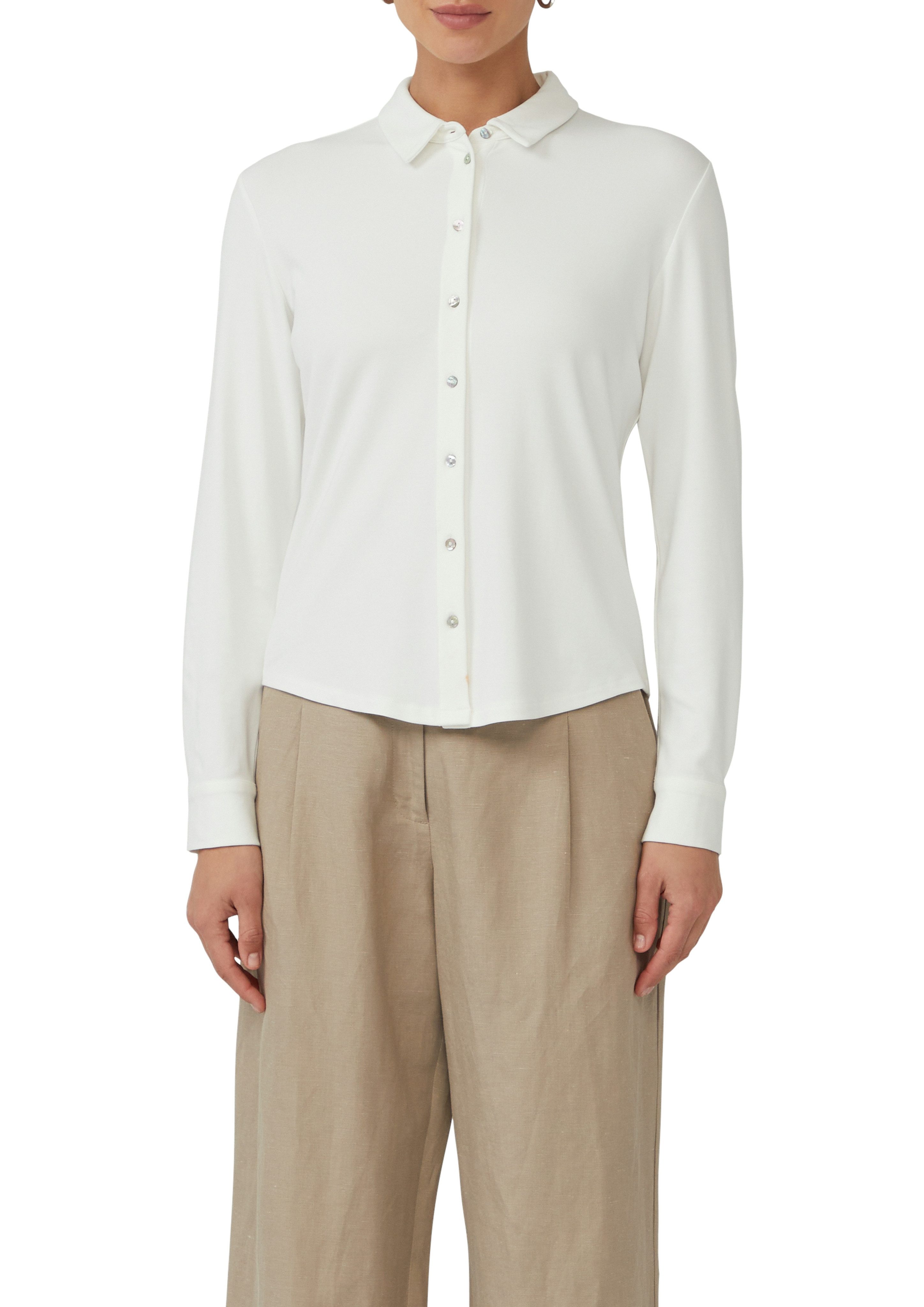 Schau dir die Hemdbluse von s.Oliver BLACK LABEL mal genauer an. Mit dem Markenlabel und den Perlmuttoptikknöpfen sieht sie raffiniert und modern aus. Die langen Ärmel enden in einer Manschette. Diese Bluse ist taillenbedeckend sowie basic geschnitten, wodurch dein Oberkörper locker umspielt wird.