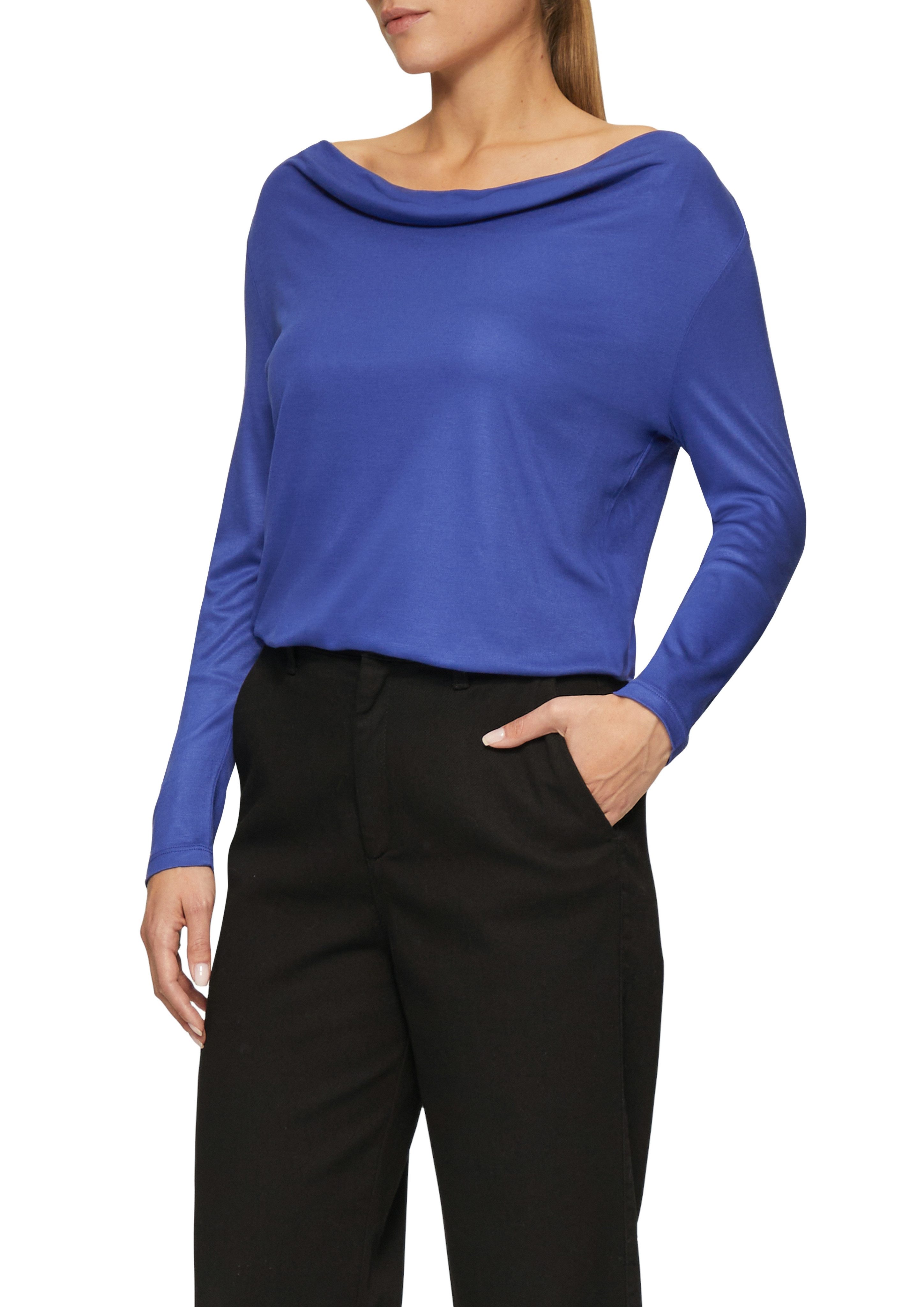 Mit dem Langarmshirt von s.Oliver BLACK LABEL stellst du im Handumdrehen ein neues Outfit zusammen. Dieses Shirt hat einen Wasserfallausschnitt und ist taillenbedeckend sowie basic geschnitten und umspielt deinen Oberkörper locker.