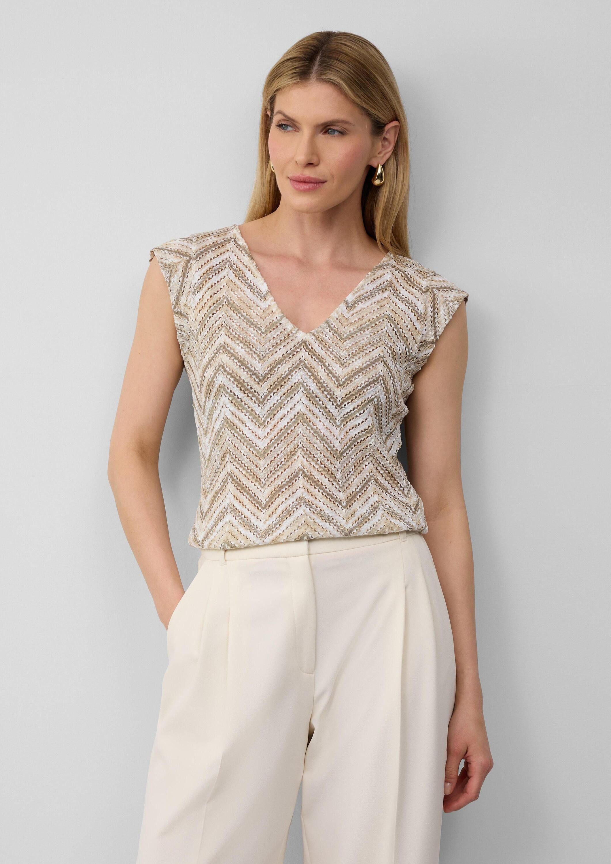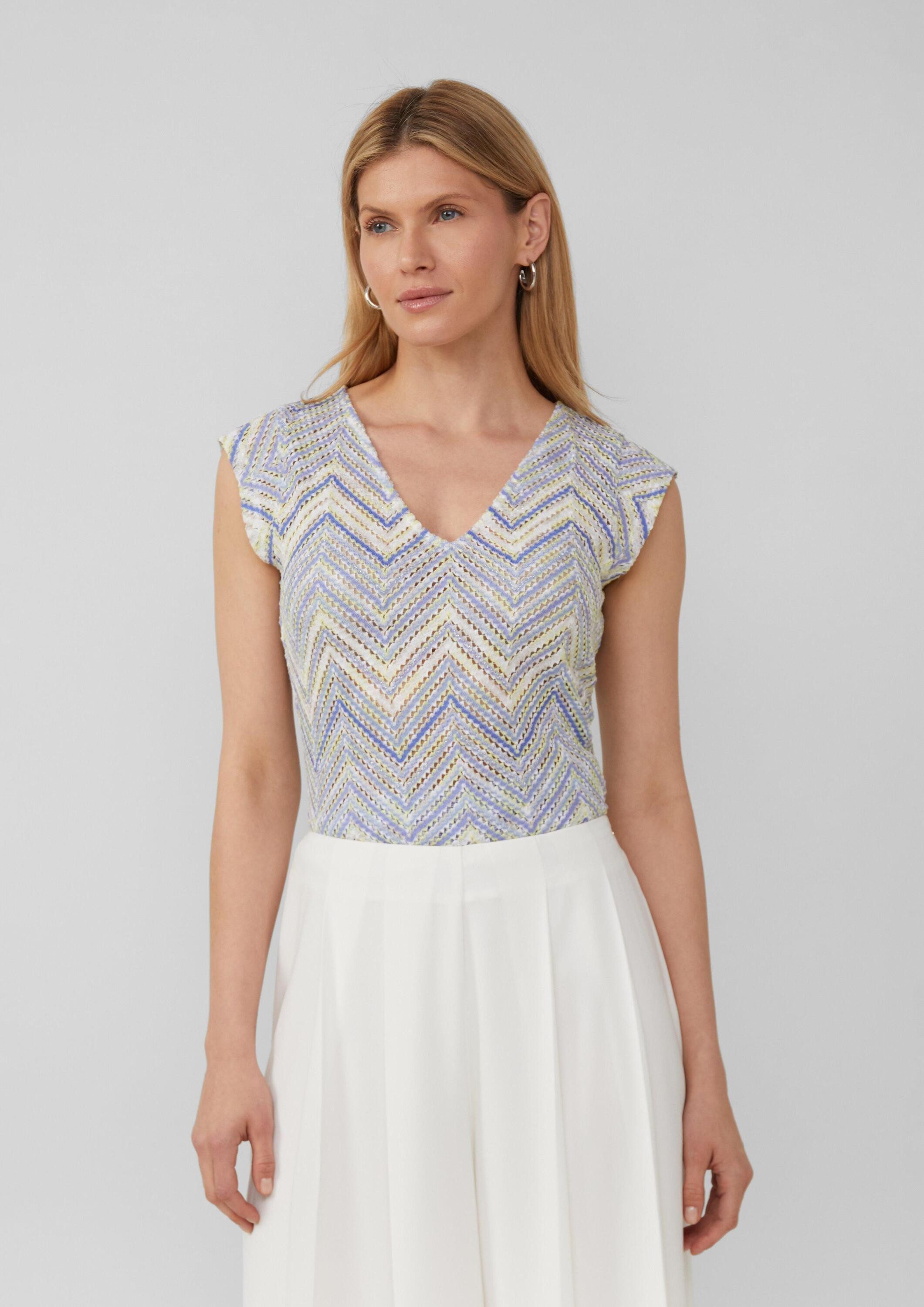 Schnittform Длина | Semitransparentes T-Shirt aus Strickjersey mit V-Ausschnitt |