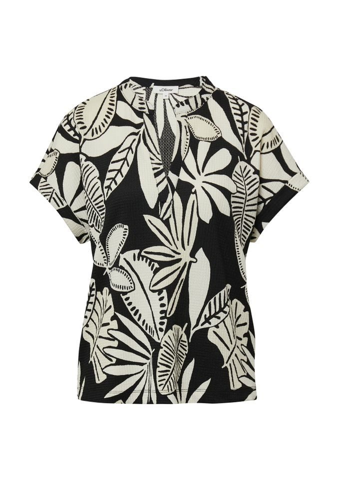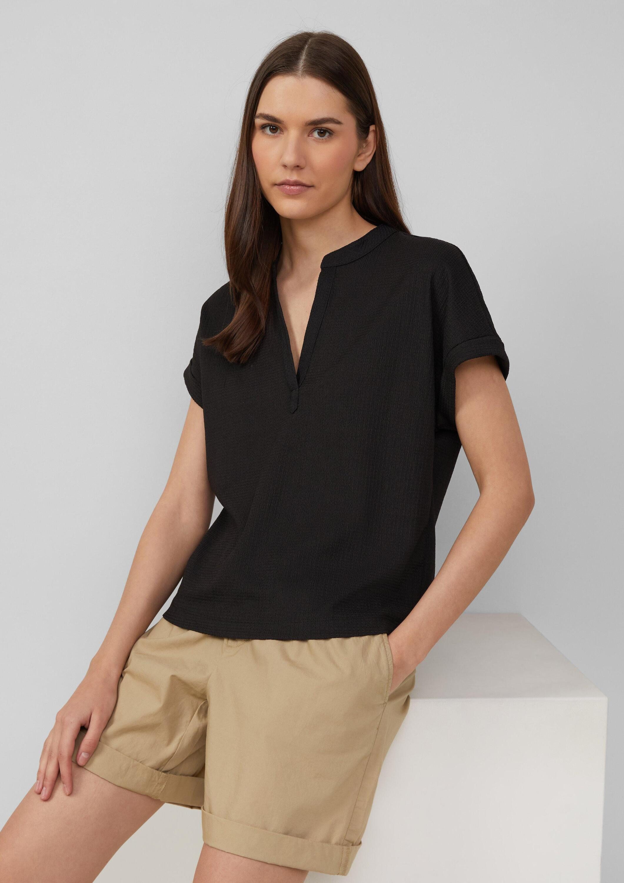 Schnittform Длина | Strukturiertes T-Shirt im Relaxed Fit mit V-Ausschnitt |