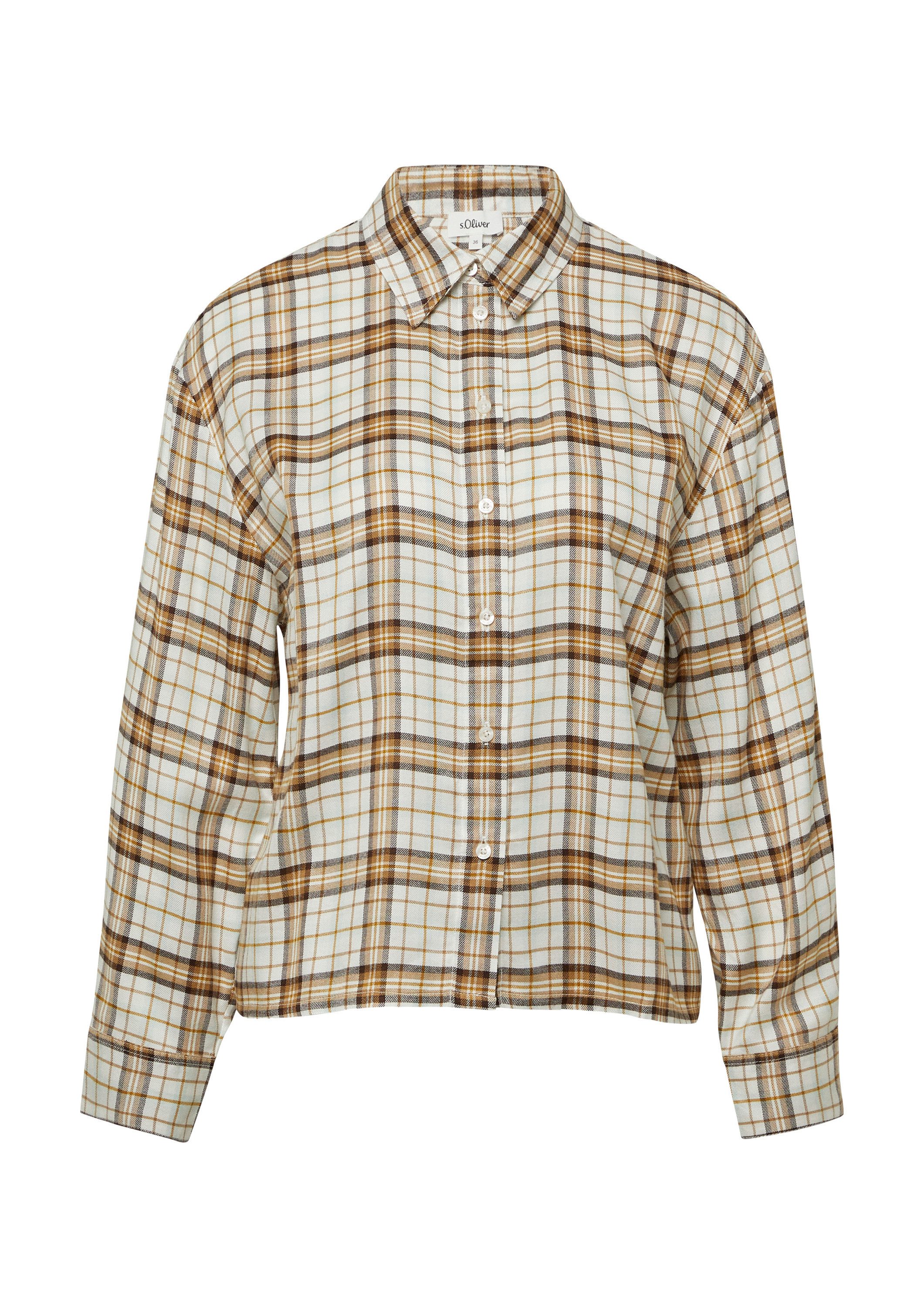 Schnittform Длина | Karierte Hemdbluse aus Viskosemix mit Raffung |