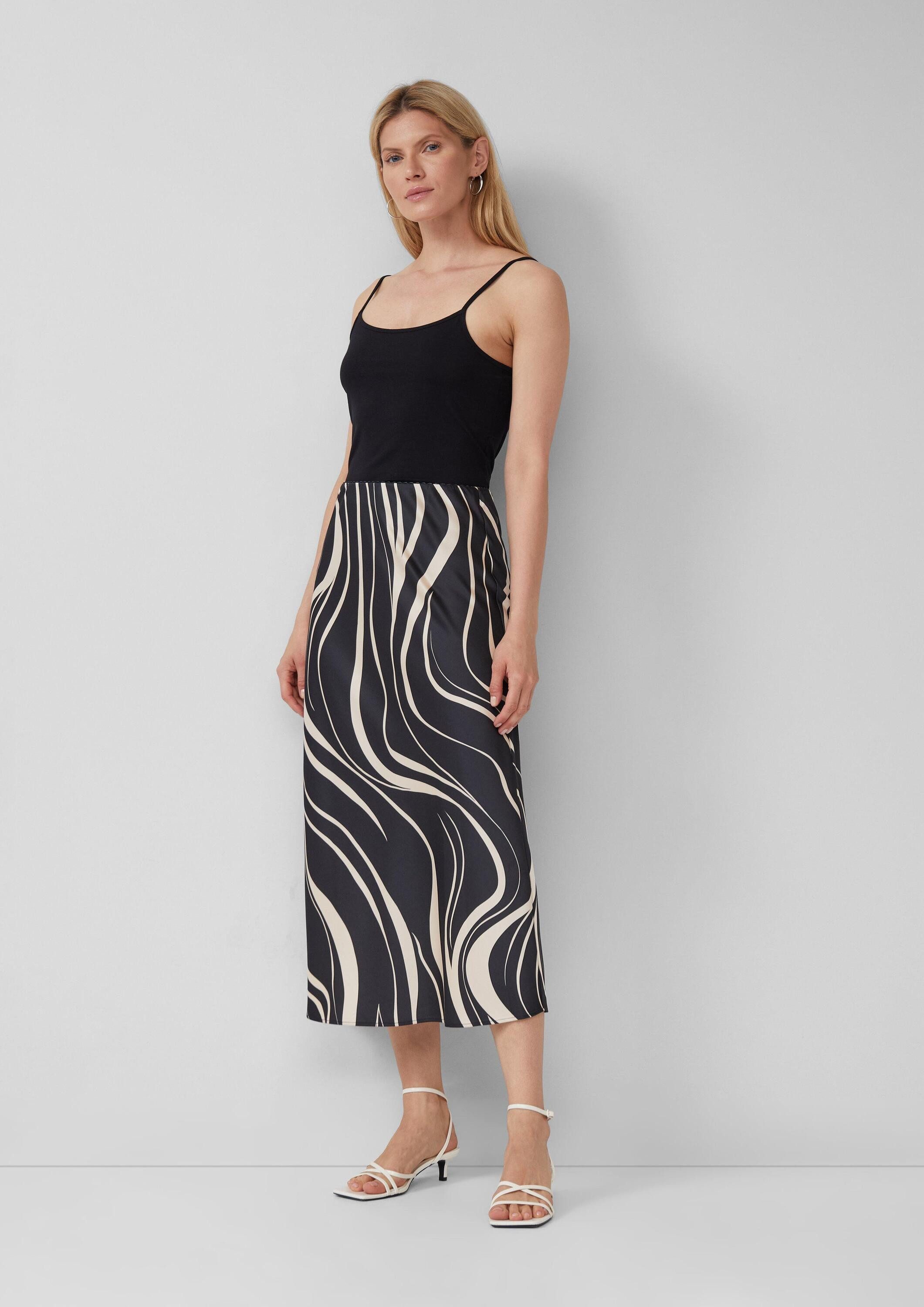 Schnittform Длина | Satinierter Midirock mit Elastikbund und All-over-Print |