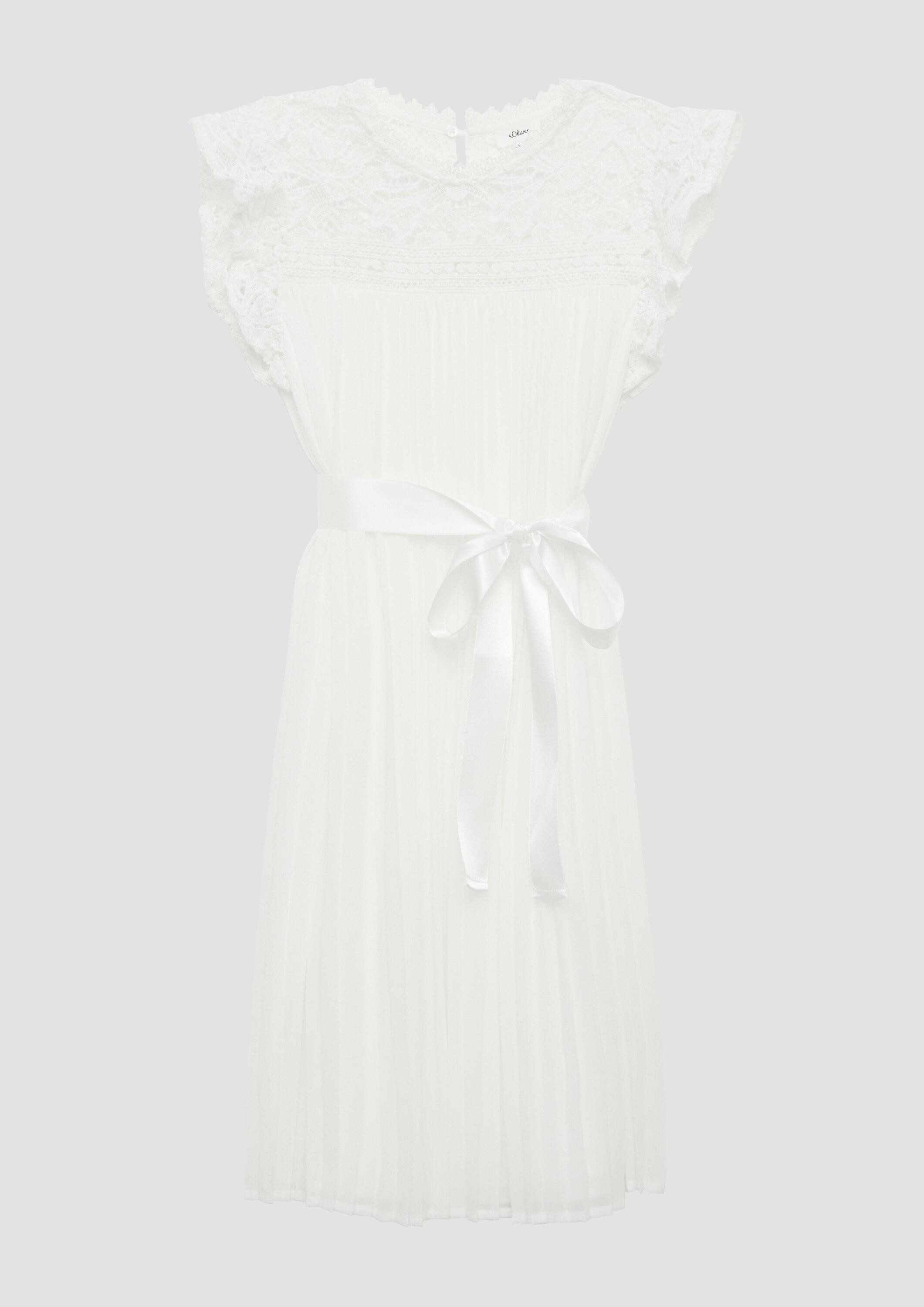 Besondere Merkmale | Kurzes Plissée-Kleid aus Chiffon mit Spitzenbesatz |