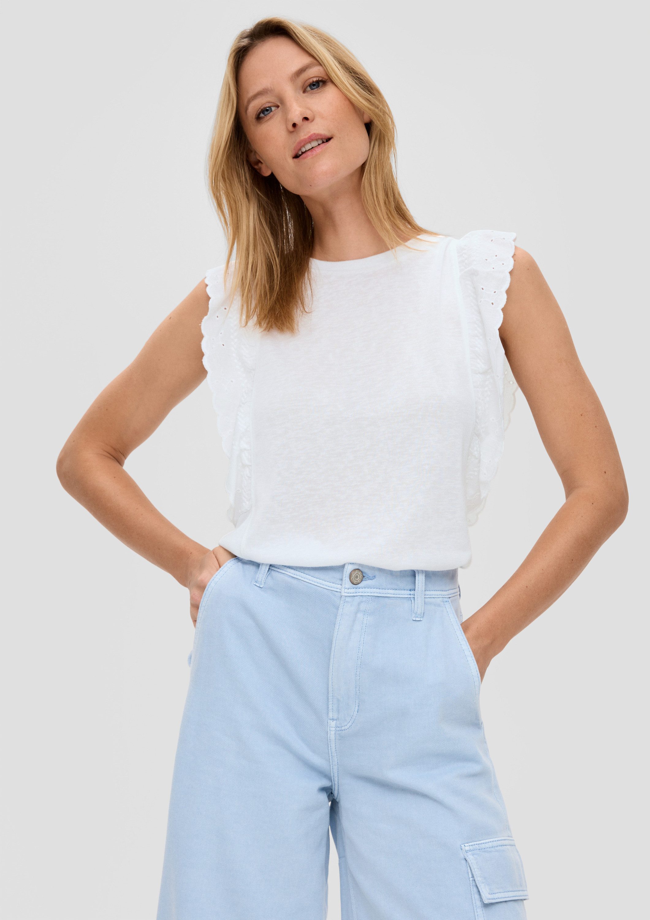 Schnittform Длина | Gerade geschnittenes Top aus Viskose-Stretch mit bestickten Flügelärmeln |