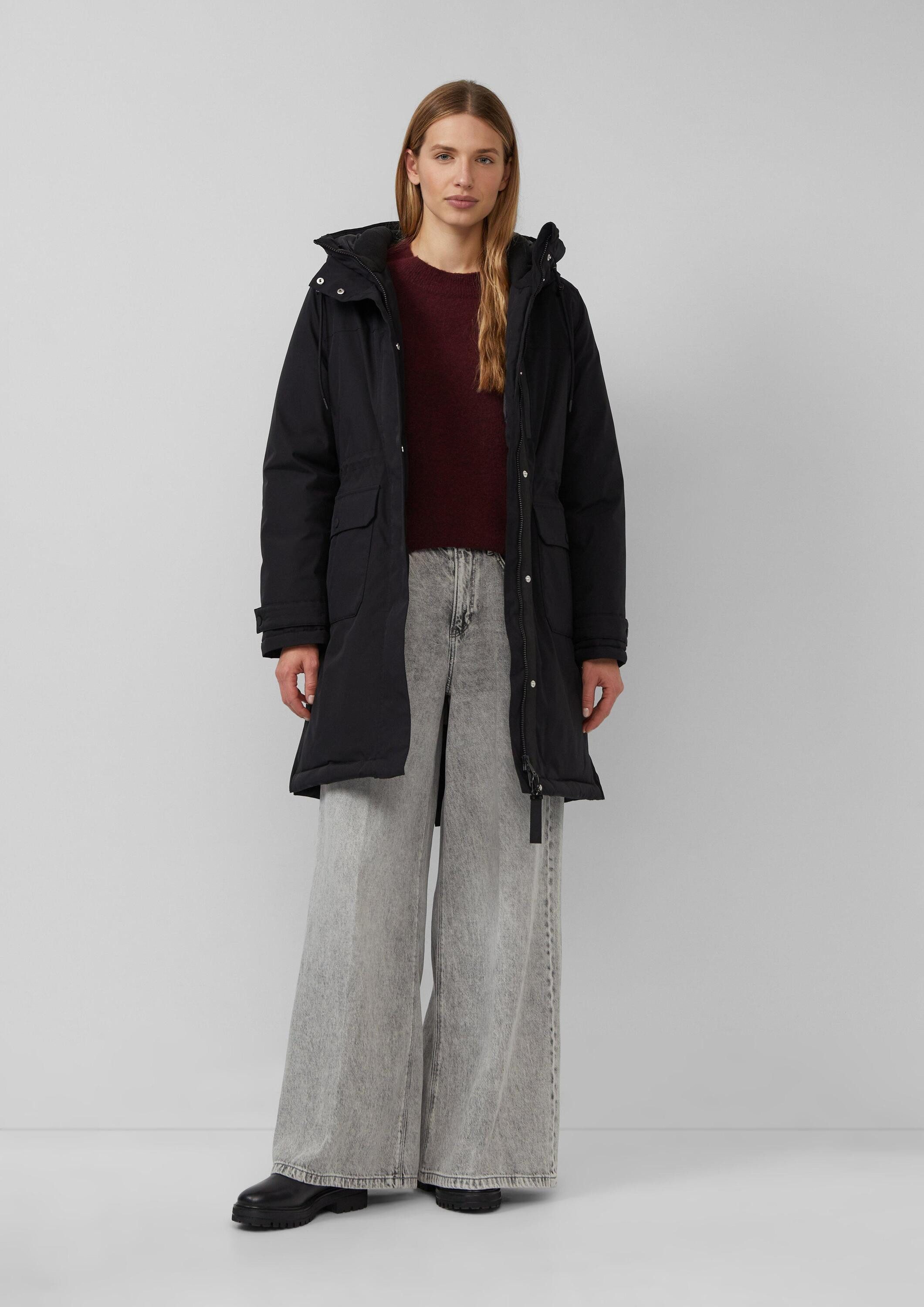 Schnittform Длина | Wärmender Outdoor-Parka mit fixierter Kapuze und verdecktem Reißverschluss |